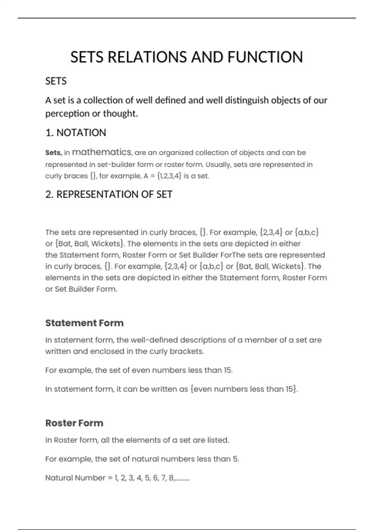 the Statement form, Roster Form or Set Builder ForThe sets are represented