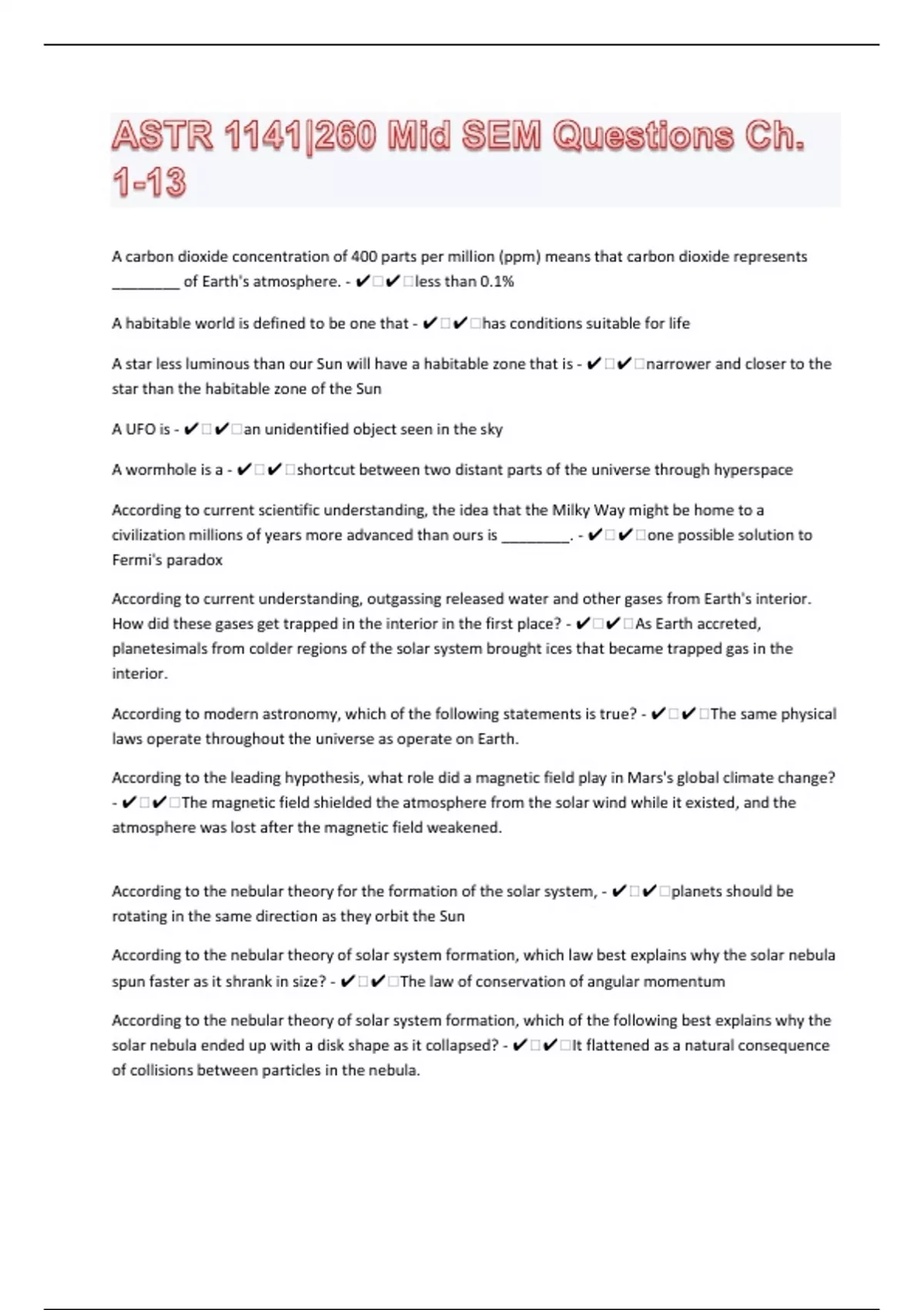 ASTR 1141|260 Mid SEM Questions Ch. 1-13|With Correct Answers |Download To Score A+|18 Pages