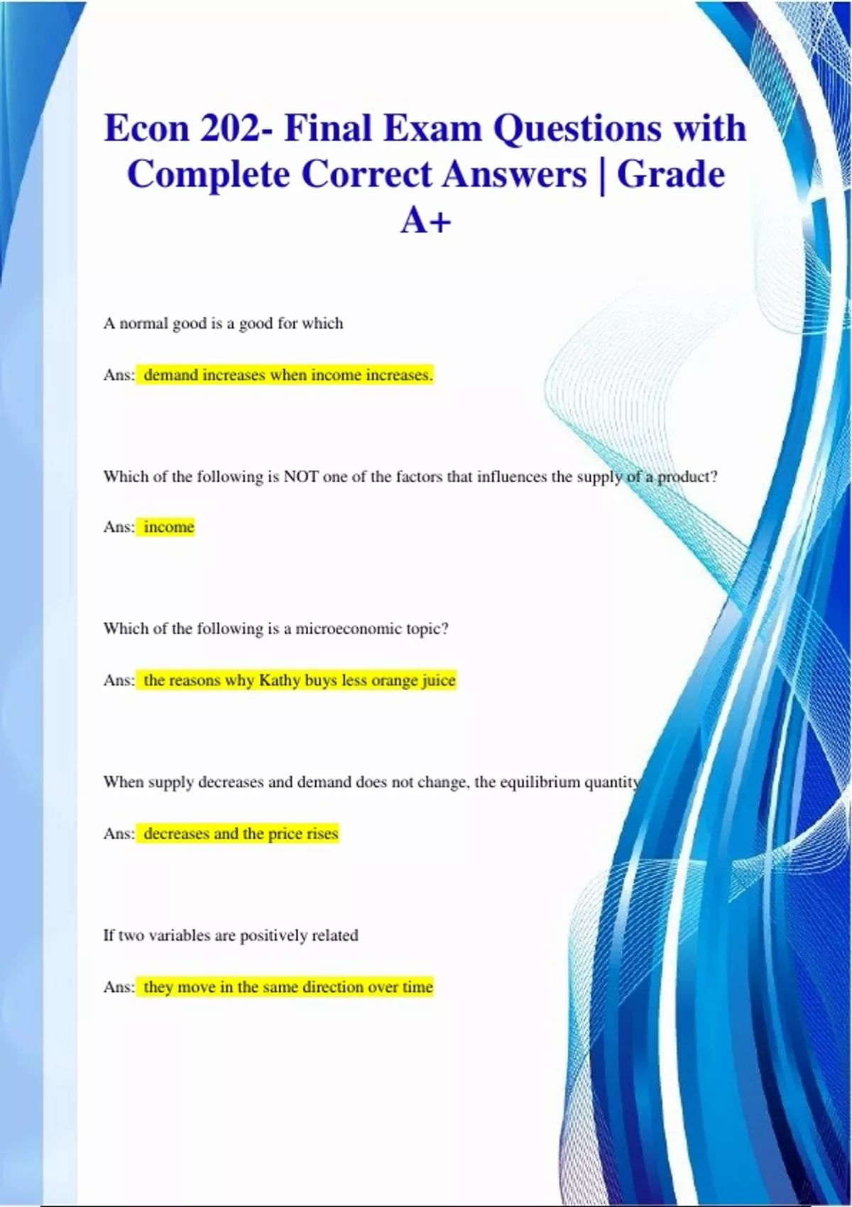 Econ 202- Final Exam Questions with Complete Correct Answers | Grade A+