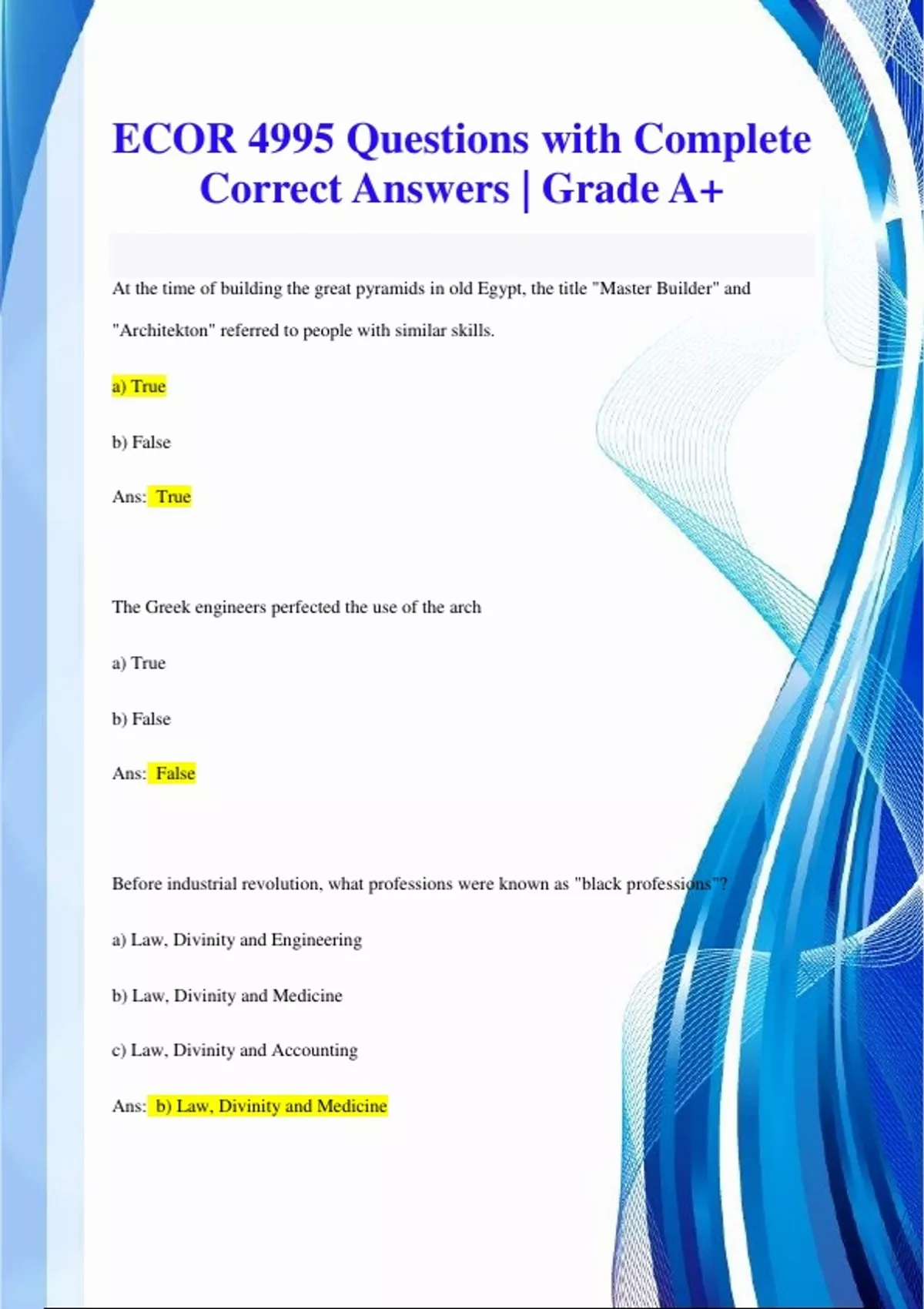 ECOR 4995 Questions with Complete Correct Answers | Grade A+