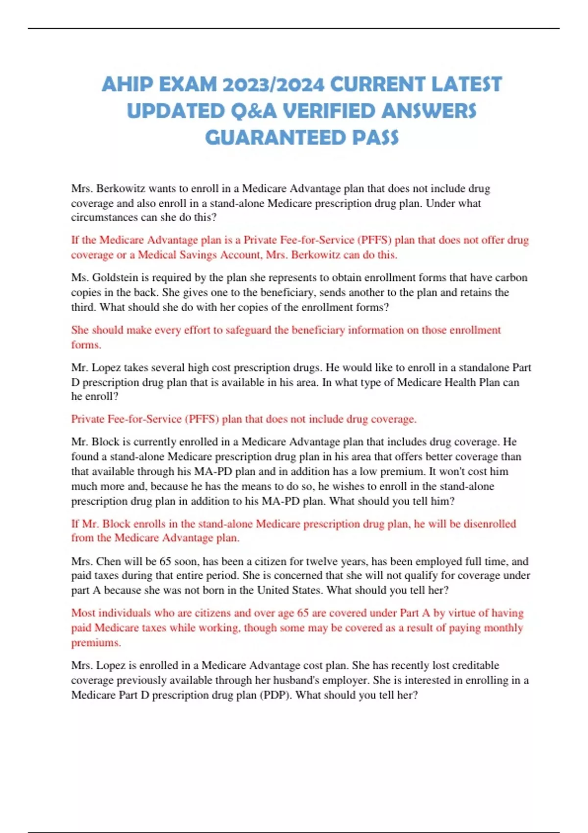 UPDATED Q&A VERIFIED ANSWERS