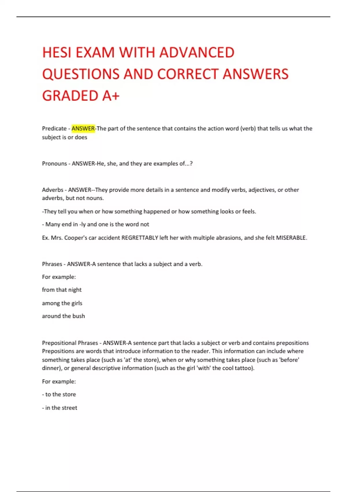 HESI EXAM WITH ADVANCED QUESTIONS AND CORRECT ANSWERS GRADED A+ this will help any student either brilliant or low IQ to have a better understanding of the exam