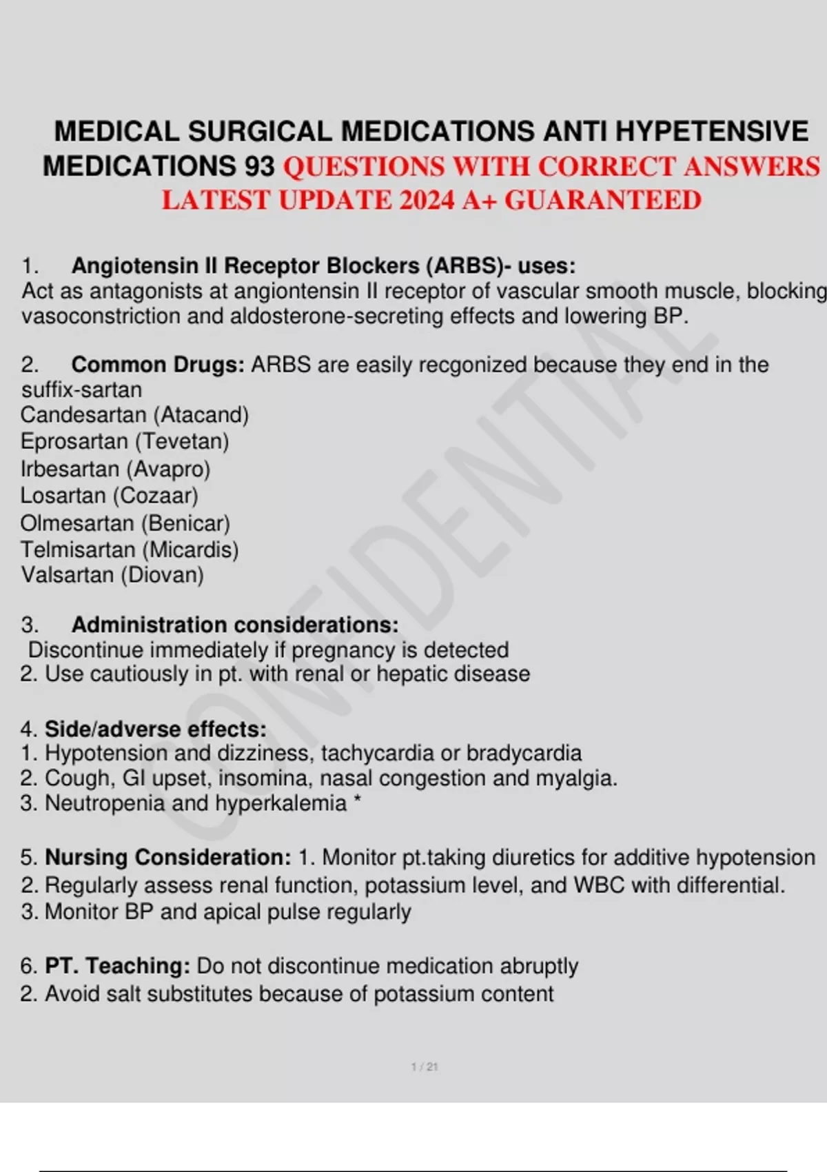 2. Common Drugs: ARBS are easily recgonized because they end in the
