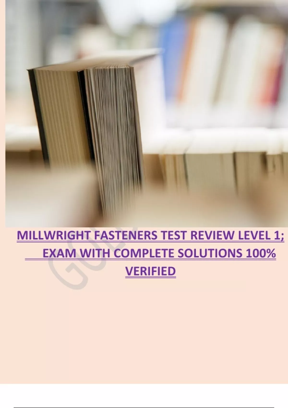 MILLWRIGHT FASTENERS TEST REVIEW LEVEL 1; EXAM WITH COMPLETE SOLUTIONS 100% VERIFIED
