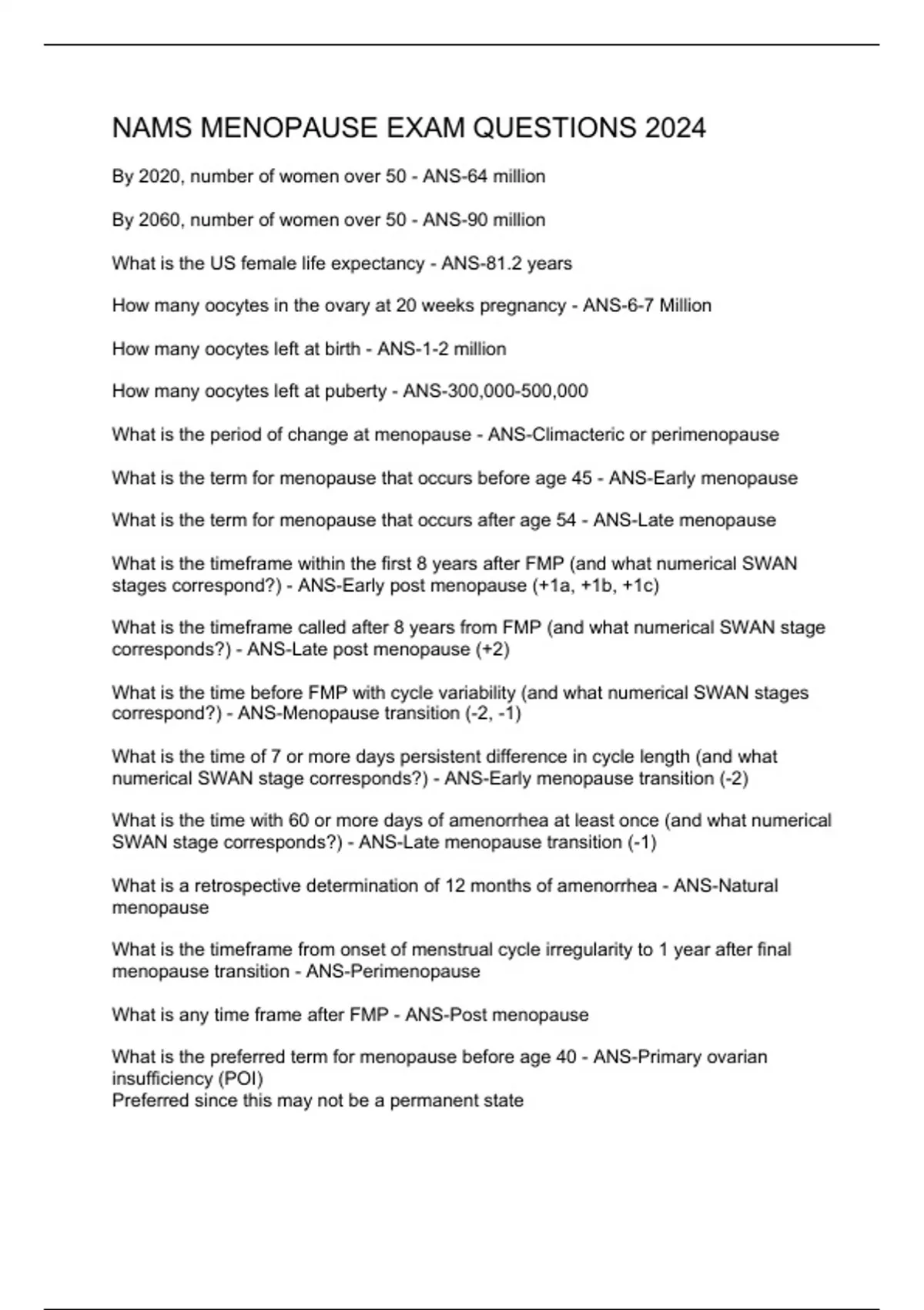 nams menopause exam questions 2024
