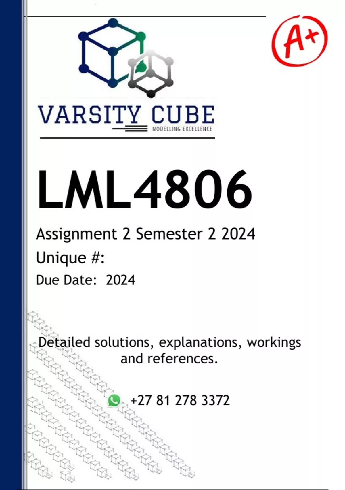 LML4806 Assignment 2 (DETAILED ANSWERS) Semester 2 2024 - DISTINCTION GUARANTEED - DISTINCTION GUARANTEED - DISTINCTION GUARANTEED Answers, guidelines, workings and references ..... Question: 1 Barbara is a business rescue practitioner of Thirsty Elephants (Pty) Ltd, a company that is under business rescue. She convenes a meeting of the creditors of Thirsty Elephants (Pty) Ltd to discuss and vote on the business rescue plan. The business rescue plan contains ample provisions that protect the interests of the secured creditors of Thirsty Elephants (Pty) Ltd. Winelands Packers (Pty) Ltd, a secured creditor of Thirsty Elephants (Pty) Ltd holding 27% of the creditors’ voting interests that are voted at the meeting, votes against the adoption of the business rescue plan. All the other secured and unsecured creditors in attendance at the meeting vote for the adoption of the business rescue plan as the plan presents certain advantages to them. Barbara is concerned that Winelands Packers (Pty) Ltd’s vote against the adoption of the 4 business rescue plan is detrimental to the successful rescue of Thirsty Elephants (Pty) Ltd, the interests of its employees and the interests of the other affected creditors. With reference to the Companies Act 71 of 2008 and the relevant case law, advise Barbara on whether she may successfully apply to a court to set aside the vote of Winelands Packers (Pty) Ltd. In your advice, you should discuss the grounds on which such an application may be made, the factors that the court should take into account when considering such an application and the effect of a court setting aside Winelands Packers (Pty) Ltd’s vote. (10) Question: 2 Catalyst Holdings Ltd is a company that invests in property, insurance and banking businesses. According to its consolidated financial statements, its business undertaking consists solely of its shareholdings in three companies, as follows: • It holds 70% of the ordinary shares in Tyrex Properties Ltd, the fair value of which is R5.5 billion Rand. • It holds 100% of the ordinary shares in RIS Insurance Ltd, the fair value of which is R500 million. • It holds 25% of the ordinary shares in ATM Bank Ltd, the fair value of which is R2 billion. The board of directors of Tyrex Properties Ltd makes an announcement that Tyrex Properties Ltd will sell all its business operations and assets to a third party for a cash consideration of R6 billion (“the proposed transaction”). Tyrex Properties Ltd gives notice to its shareholders of a general meeting to be held on 15 November 2024, at which a resolution will be put to the shareholders of Tyrex Properties Ltd to consider and approve the proposed transaction. Robyn, who holds 3% of the shares in Catalyst Holdings Ltd, is dissatisfied with the proposed transaction. He is of the view that the offered cash consideration of R6 billion is significantly lower than the market value of Tyrex Properties Ltd’s business operations and assets. He is concerned that even though he is not a shareholder of Tyrex Properties Ltd, the proposed transaction will have a significant negative impact on the value of the shares that he holds in Catalyst Holdings Ltd. With reference to the Companies Act 71 of 2008, case law and the facts provided: 5 2.1 Identify the type of transaction that is proposed in the scenario above. (2) 2.2 Explain whether Catalyst Holdings Ltd and Tyrex Properties Ltd are related. (2) 2.3 Advise Robyn on whether he would be entitled to vote in regard to the proposed transaction or to seek the appraisal remedy in the event that the board of directors of Tyrex Properties Ltd proceeds to implement the proposed transaction.