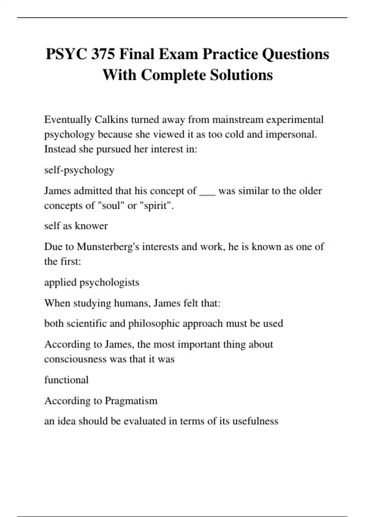 PSYC 375 Final Exam Practice Questions With Complete Solutions