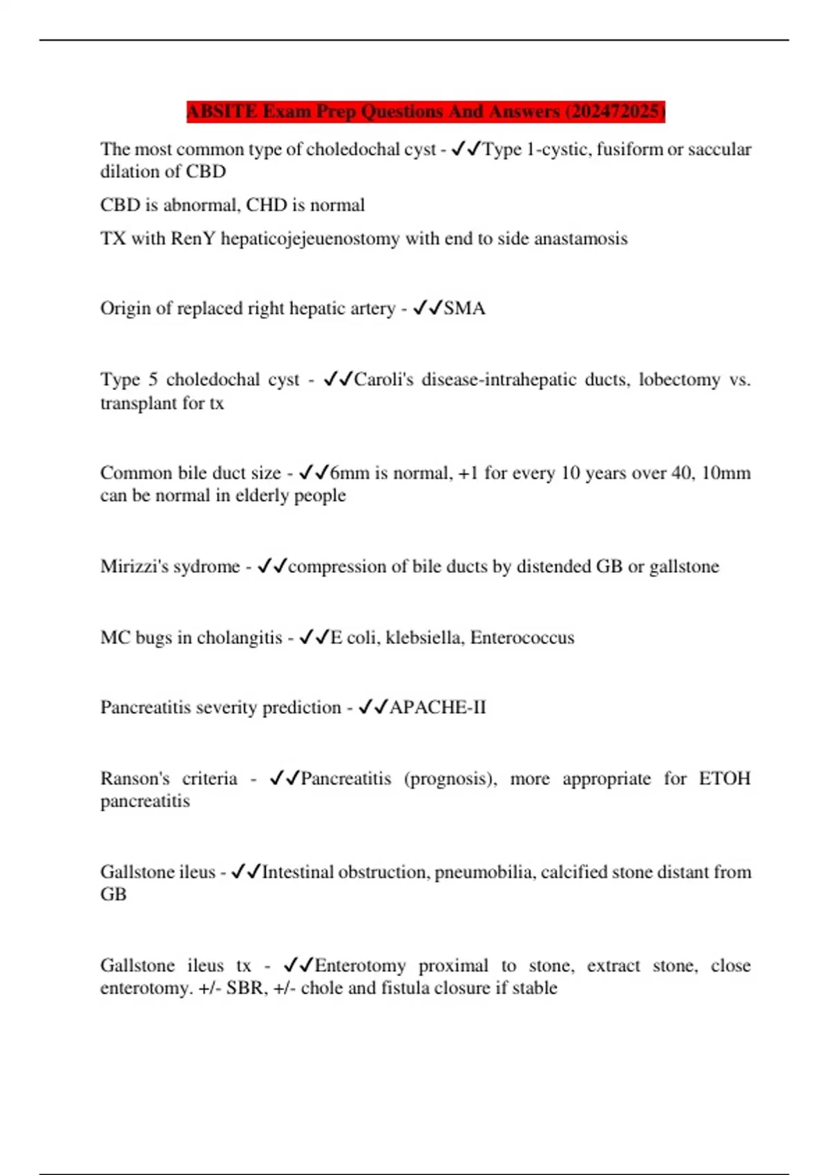 ABSITE Exam Prep Questions And Answers ()