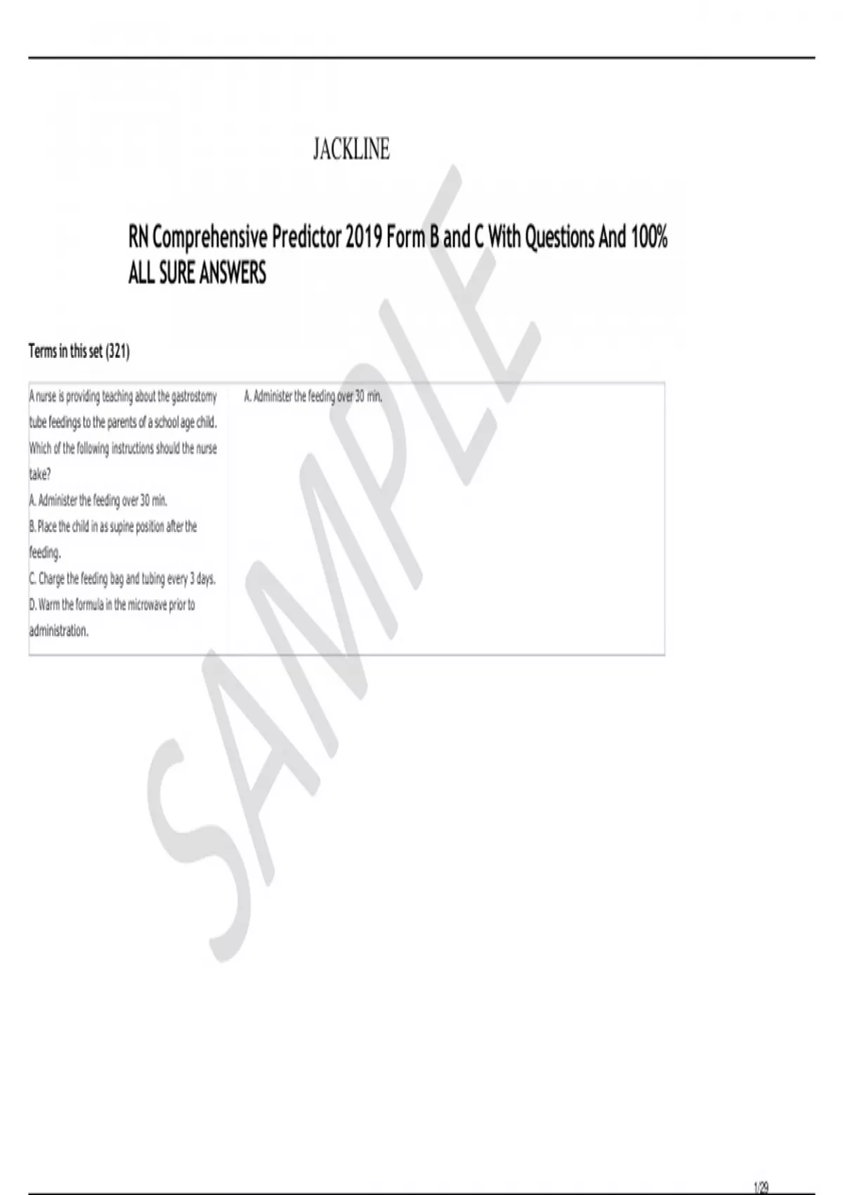 RN Comprehensive Predictor 2019 Form B and C With Questions And 100% ALL SURE ANSWERS