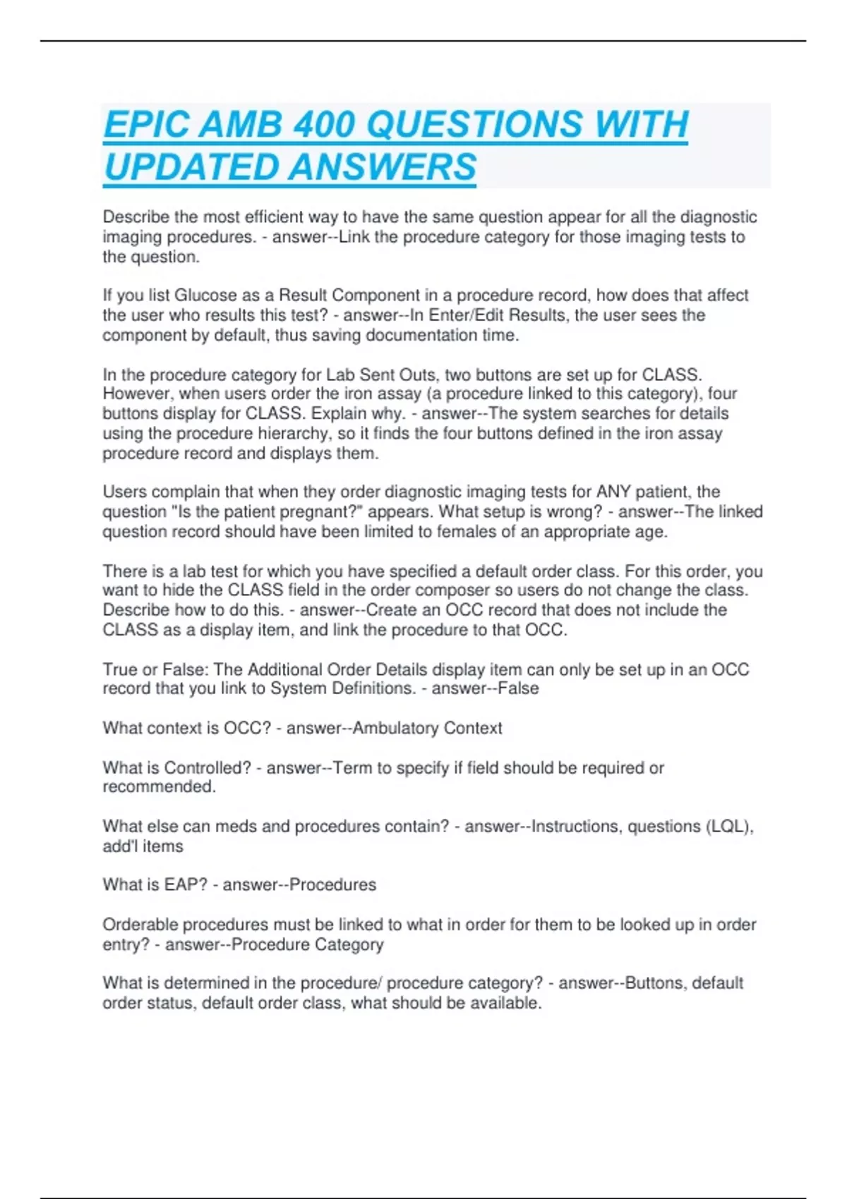 EPIC AMB 400 QUESTIONS WITH UPDATED ANSWERS