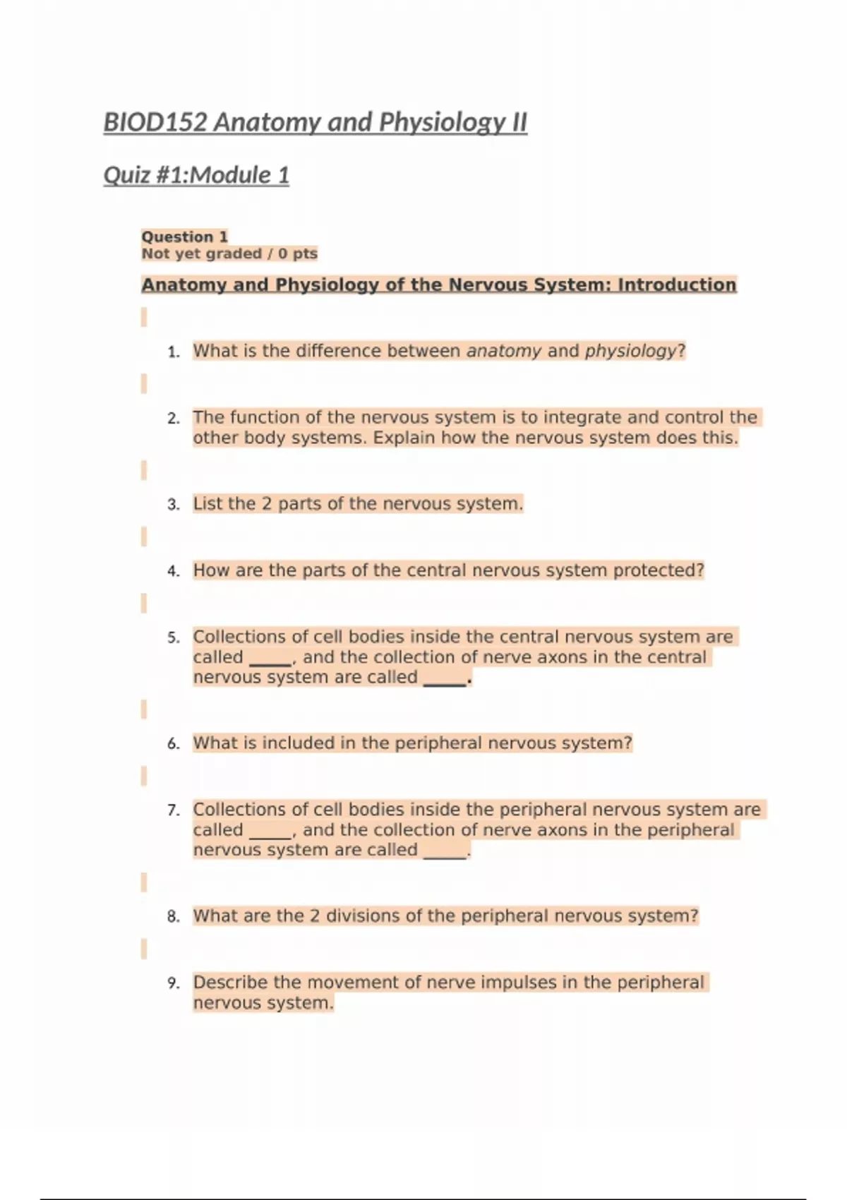 BIOD 152 Anatomy and Physiology II Quiz #1 Module 1