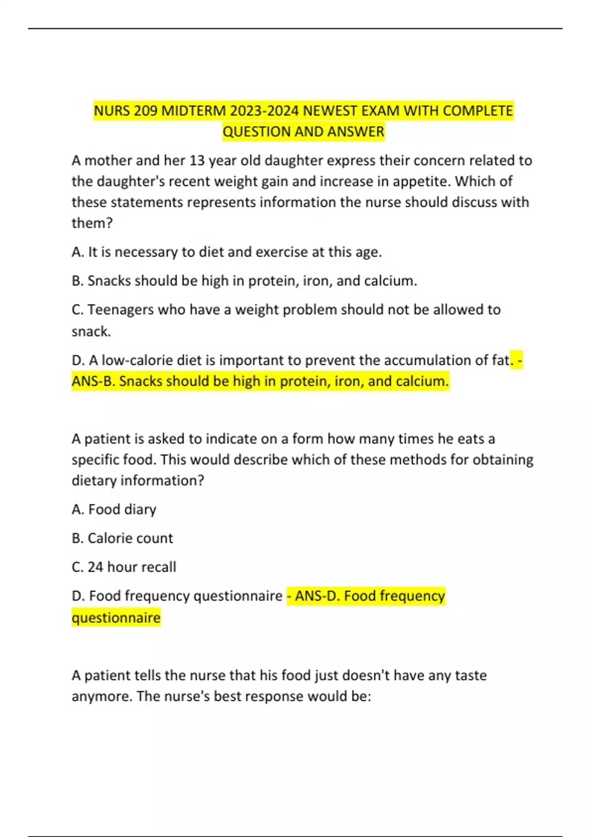 NURS 209 MIDTERM NEWEST EXAM WITH COMPLETE QUESTION AND ANSWER