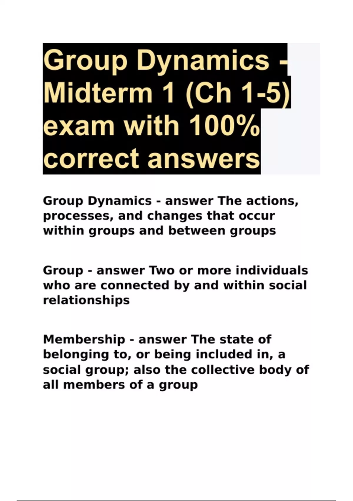 Group Dynamics - Midterm 1 (Ch 1-5) exam with 100% correct answers