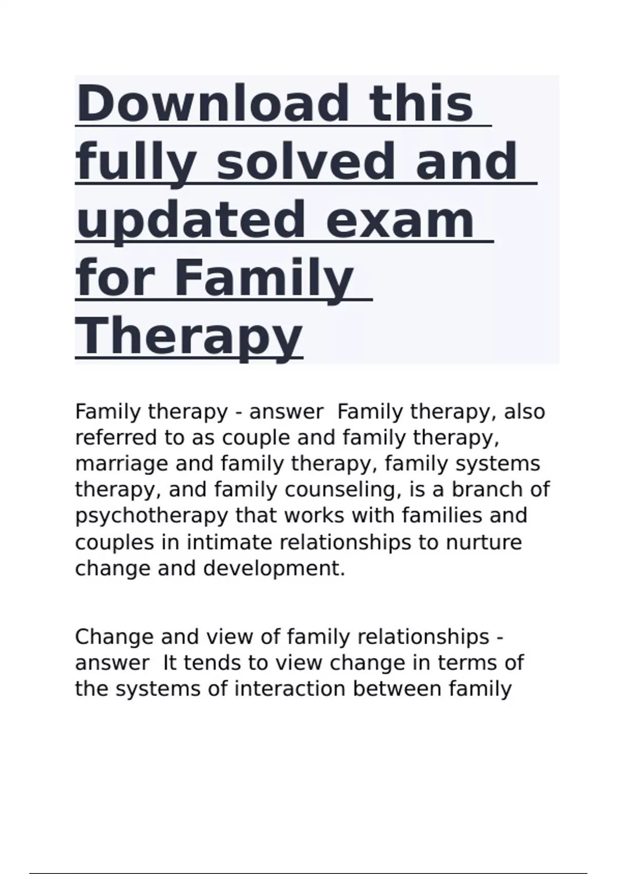 Family therapy Family therapy, also referred to as couple and family therapy, marriage and family therapy, family systems therapy, and family counseling, is a branch of psychotherapy that works with families and couples in intimate relationships to nurture change and development. Change and view of family relationships It tends to view change in terms of the systems of interaction between family members. It emphasizes family relationships as an important factor in psychological health. The different schools of family therapy have in common a belief that The different schools of family therapy have in common a belief that, regardless of the origin of the problem, and regardless of whether the clients consider it an "individual" or "family" issue, involving families in solutions often benefits clients. Influencers There was initially a strong influence from psychoanalysis (most of the early founders of the field had psychoanalytic backgrounds) and social psychiatry, and later from learning theory and behavior therapy - and significantly, these clinicians began to articulate various theories about the nature and functioning of the family as an entity that was more than a mere aggregation of individuals. The work of... The movement received an important boost starting in the early 1950s through the work of anthropologist Gregory Bateson and colleagues - Jay Haley, Donald D. Jackson, John Weakland, William Fry, and later, Virginia Satir, Paul Watzlawick and others - at Palo Alto in the United States, who introduced ideas from cybernetics and general systems theory into social into social psychology and psychotherapy, focusing in particular on the role of communication (see Bateson Project). Traditional focus meets new interventions This approach eschewed the traditional focus on individual psychology and historical factors - that involve so-called linear causation and content - and emphasized instead feedback and homeostatic mechanisms and "rules" in here-and-now interactions - so-called circular causation and process - that were thought to maintain or exacerbate problems, whatever the original cause(s).[4][5] (See also systems psychology and systemic therapy.) Other influencers This group was also influenced significantly by the work of US psychiatrist, hypnotherapist, and brief therapist, Milton H. Erickson - especially his innovative use of strategies for change, such as paradoxical directives Some groups were focusing on schizophrenia including Carl Whitaker, Murray Bowen, and Ivan Böszörményi-Nagy) had a particular interest in the possible psychosocial causes and treatment of schizophrenia, especially in terms of the putative "meaning" and "function" of signs and symptoms within the family system. Some groups were focused on communication The research of psychiatrists and psychoanalysts Lyman Wynne and Theodore Lidz on communication deviance and roles (e.g., pseudo-mutuality, pseudo-hostility, schism and skew) in families of schizophrenics also became influential with systems-communications-oriented theorists and therapists. Another theme A related theme, applying to dysfunction and psychopathology more generally, was that of the "identified patient" or "presenting problem" as a manifestation of or surrogate for the family's, or even society's, problems. (See also double bind; family nexus.) Evolution of family therapy From those groups that were most strongly influenced by cybernetics and systems theory, there came MRI Brief Therapy, and slightly later, strategic therapy, Salvador Minuchin's Structural Family Therapy and the Milan systems model. Partly in reaction to some aspects of these systemic models, came the experiential approaches of Virginia Satir and Carl Whitaker, which downplayed theoretical constructs, and emphasized subjective experience and unexpressed feelings (including the subconscious), authentic communication, spontaneity, creativity, total therapist engagement, and often included the extended family. more influencers Concurrently and somewhat independently, there emerged the various intergenerational therapies of Murray Bowen, Ivan Böszörményi-Nagy, James Framo, and Norman Paul, which present different theories about the intergenerational transmission of health and dysfunction, but which all deal usually with at least three generations of a family (in person or conceptually), either directly in therapy sessions, or via "homework", "journeys home", etc. Psychodynamic family therapy - which, more than any other school of family therapy, deals directly with individual psychology and the unconscious in the context of current relationships - continued to develop through a number of groups that were influenced by the ideas and methods of Nathan Ackerman, and also by the British School of Object Relations and John Bowlby's work on attachment. Multiple-family group therapy, a precursor of psychoeducational family intervention, emerged, in part, as a pragmatic alternative form of intervention - especially as an adjunct to the treatment of serious mental disorders with a significant biological basis, such as schizophrenia - and represented something of a conceptual challenge to some of the "systemic" (and thus potentially "family-blaming") paradigms of pathogenesis that were implicit in many of the dominant models of family therapy. The late-1960s and early-1970s saw the development of network therapy (which bears some resemblance to traditional practices such as Ho'oponopono) by Ross Speck and Carolyn Attneave, and the emergence of behavioral marital therapy (renamed behavioral couples therapy in the 1990s; see also relationship counseling) and behavioral family therapy as models in their own right. Family therapy uses a range of counseling and other techniques including: Structural therapy - Identifies and Re-Orders the organisation of the family system Strategic therapy - Looks at patterns of interactions between family members Systemic/Milan therapy - Focuses on beli