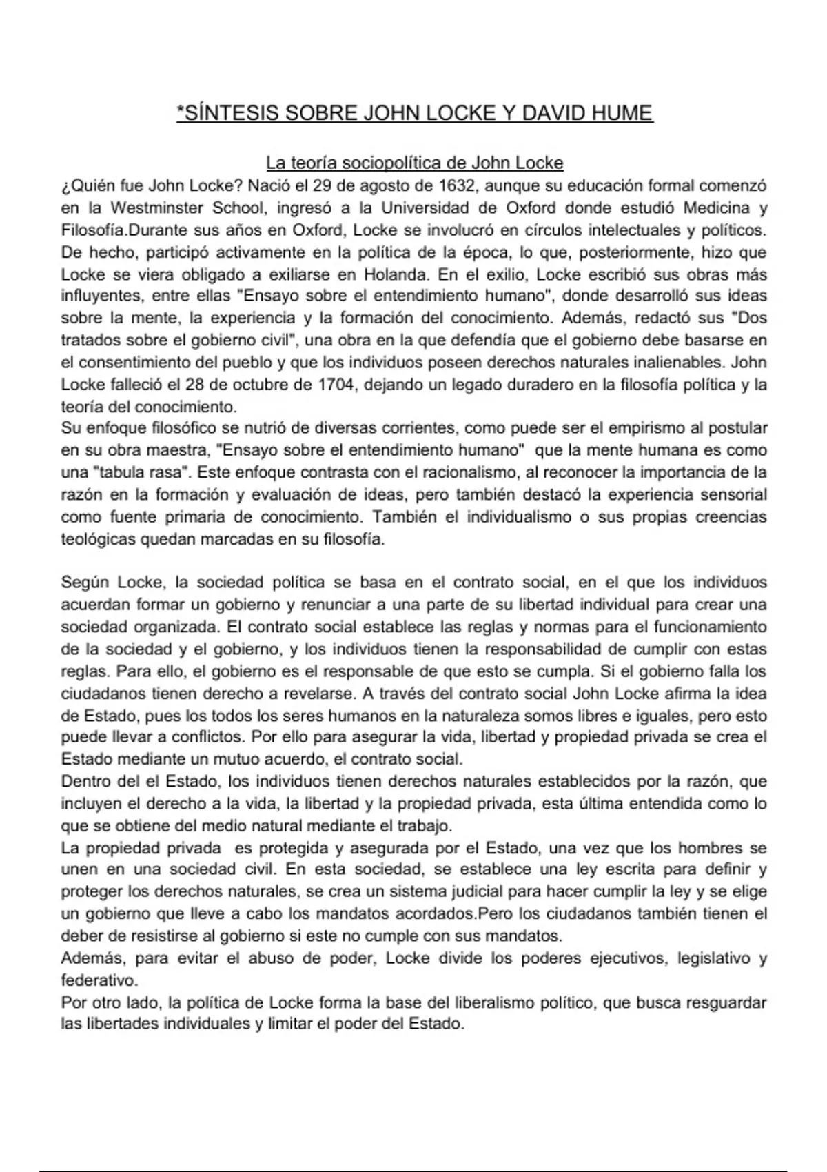*SÍNTESIS SOBRE JOHN LOCKE Y DAVID HUME