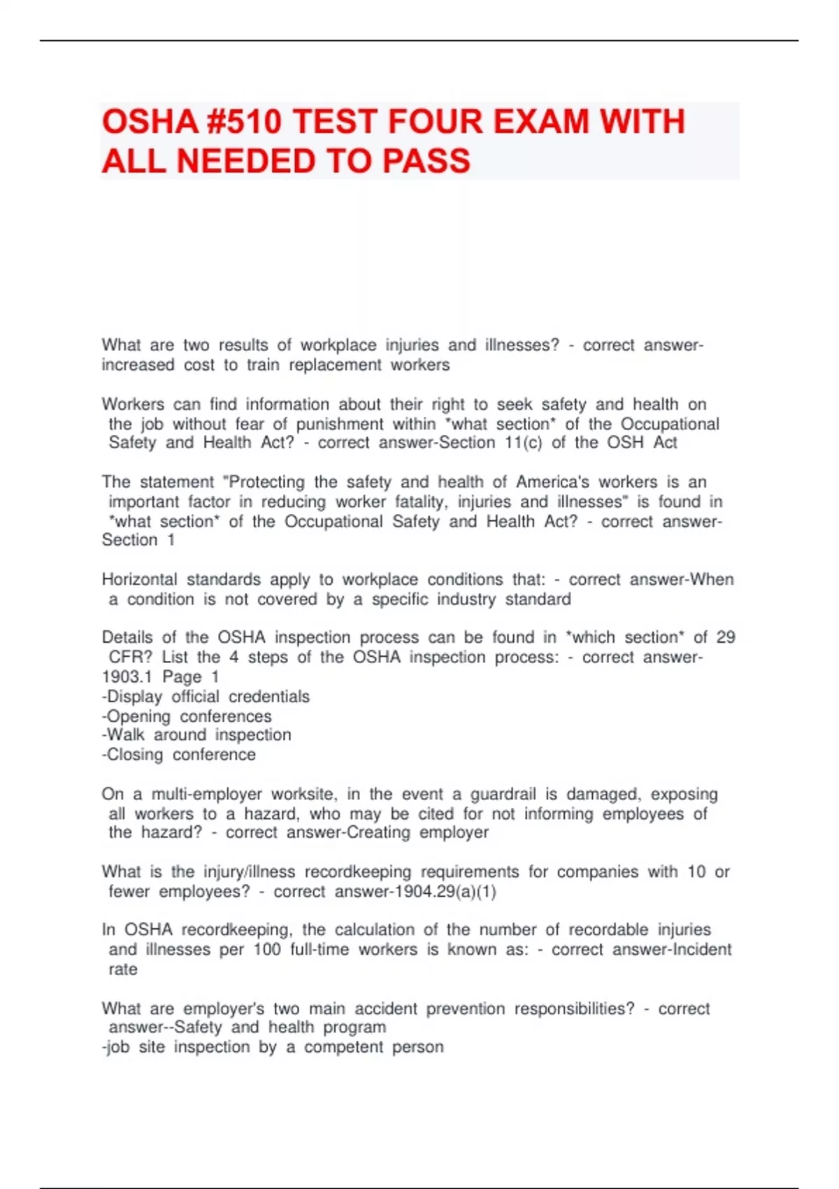 OSHA #510 TEST FOUR EXAM WITH ALL NEEDED TO PASS