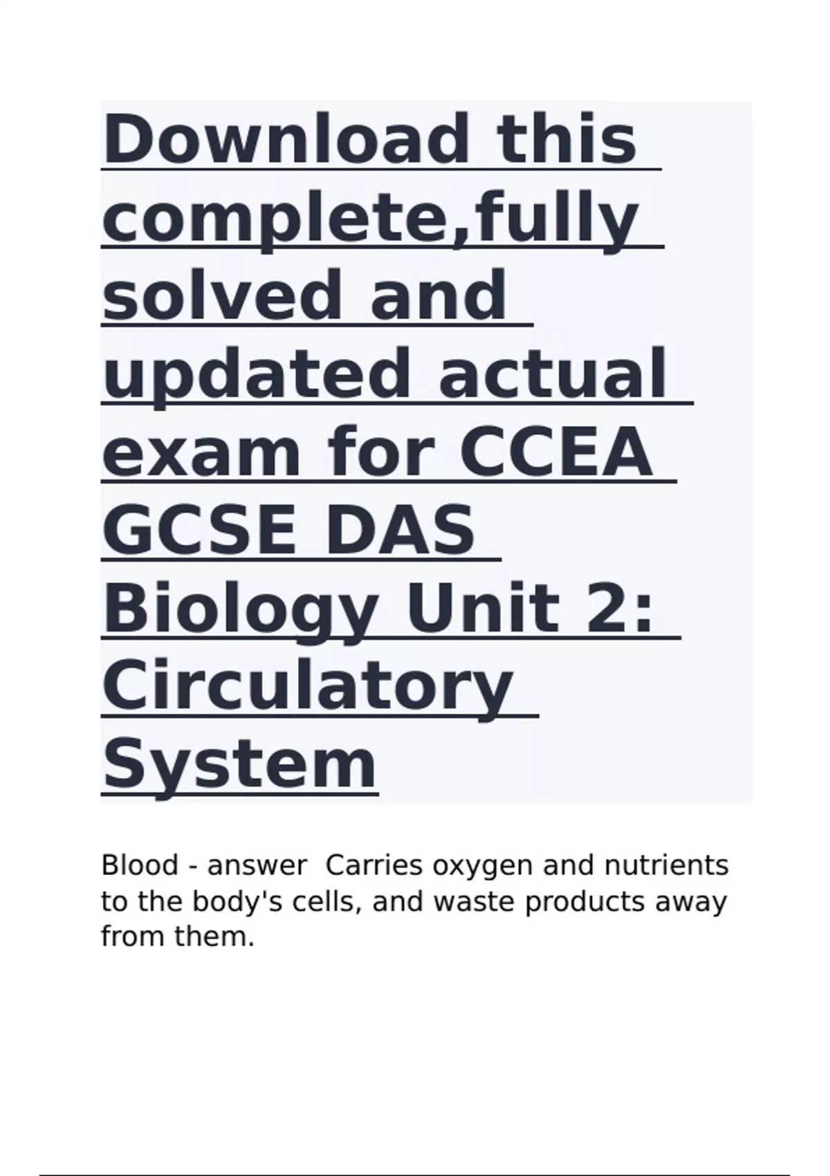 Blood - answer Carries oxygen and nutrients