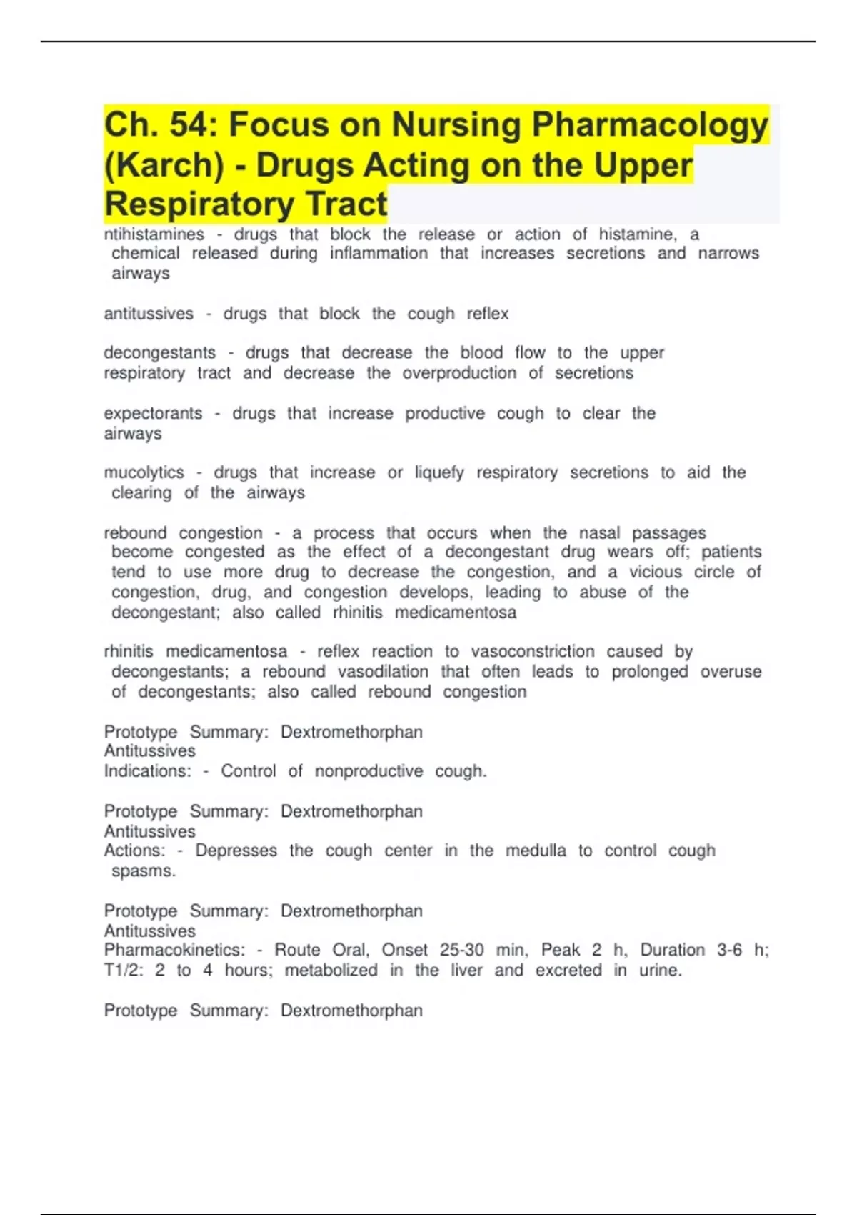 Ch. 54: Focus on Nursing Pharmacology (Karch) - Drugs Acting on the Upper Respiratory Tract