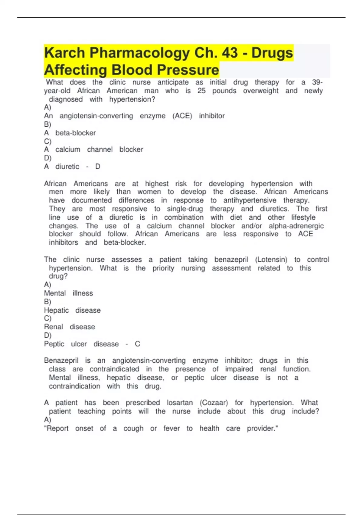 Karch Pharmacology Ch. 43 - Drugs Affecting Blood Pressure