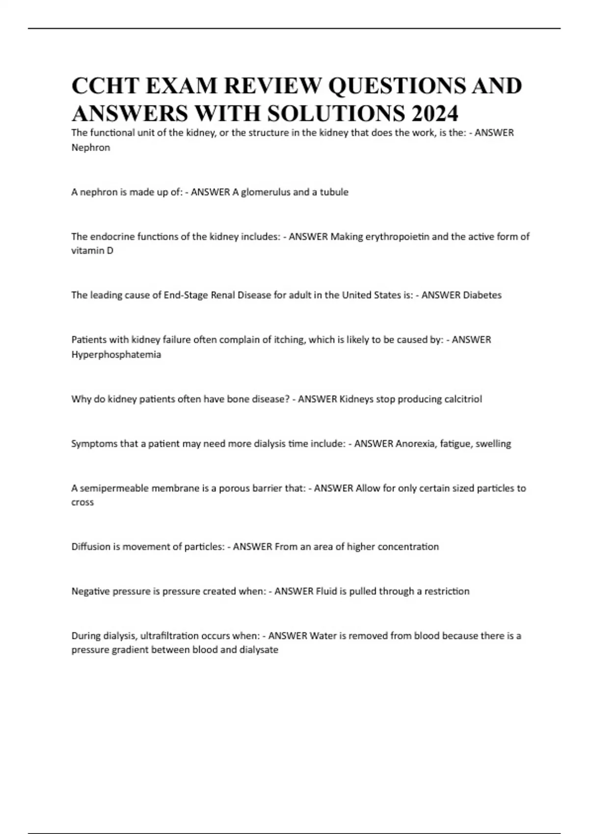 CCHT EXAM REVIEW QUESTIONS AND ANSWERS WITH SOLUTIONS 2024