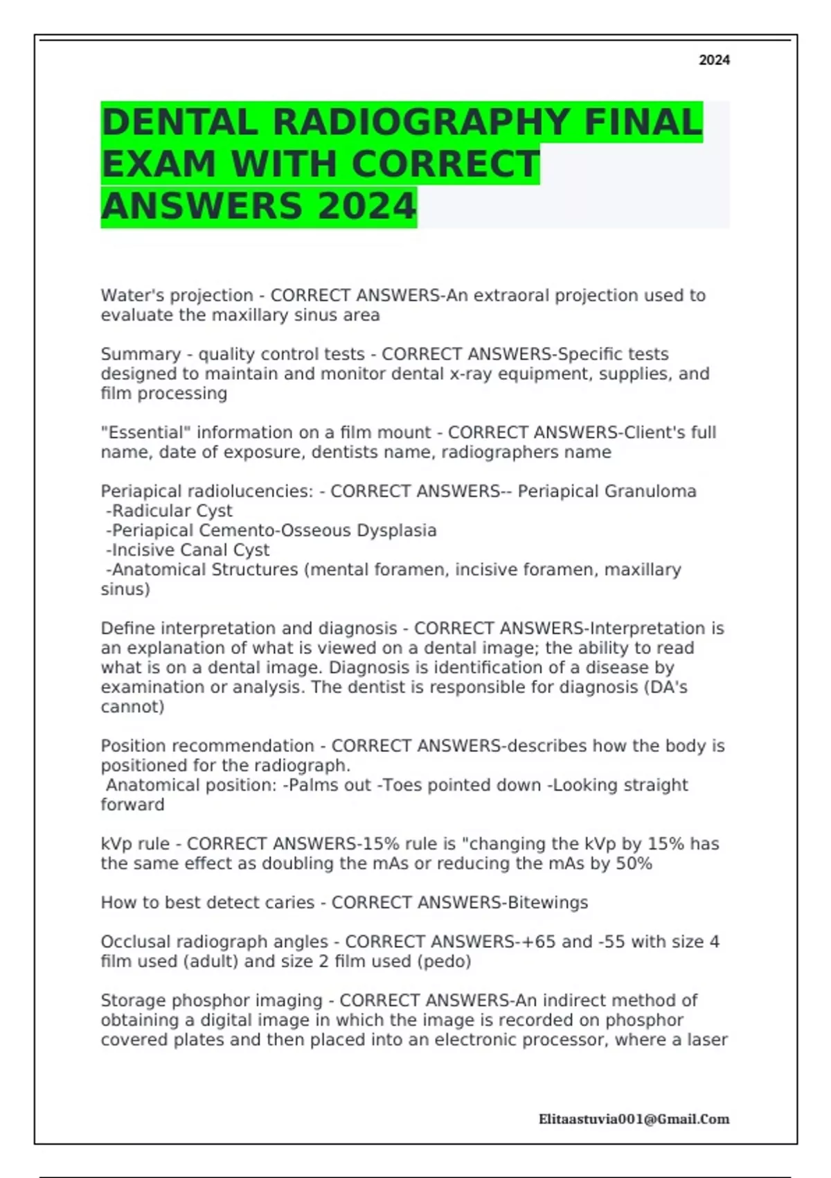 DENTAL RADIOGRAPHY FINAL EXAM WITH CORRECT ANSWERS 2024
