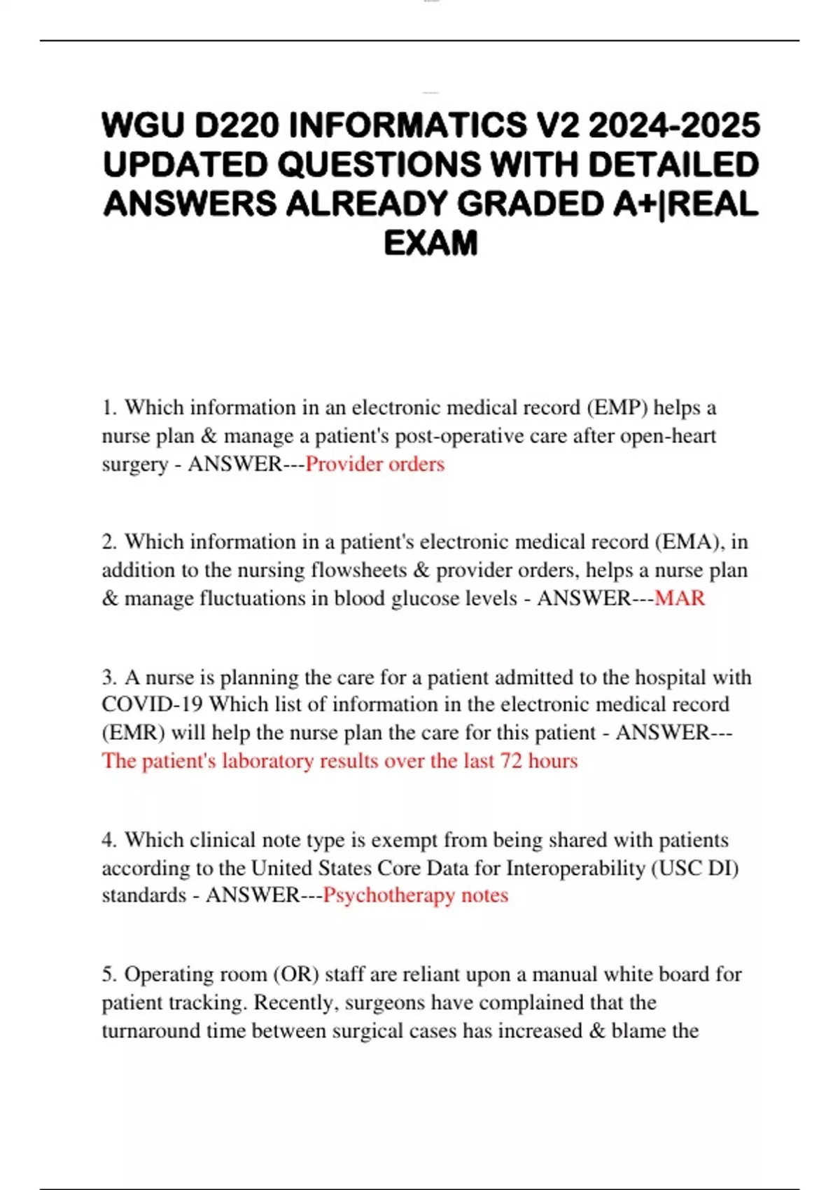WGU D220 INFORMATICS V UPDATED QUESTIONS WITH DETAILED ANSWERS ALREADY GRADED A+|REAL EXAM WGU D220 INFORMATICS V UPDATED QUESTIONS WITH DETAILED ANSWERS ALREADY GRADED A+|REAL EXAM WGU D220 INFORMATICS V UPDATED QUESTIONS WITH DETAILED ANSWERS ALREADY GRADED A+|REAL EXAM WGU D220 INFORMATICS V UPDATED QUESTIONS WITH DETAILED ANSWERS ALREADY GRADED A+|REAL EXAM WGU D220 INFORMATICS V UPDATED QUESTIONS WITH DETAILED ANSWERS ALREADY GRADED A+|REAL EXAM WGU D220 INFORMATICS V UPDATED QUESTIONS WITH DETAILED ANSWERS ALREADY GRADED A+|REAL EXAM WGU D220 INFORMATICS V UPDATED QUESTIONS WITH DETAILED ANSWERS ALREADY GRADED A+|REAL EXAM WGU D220 INFORMATICS V UPDATED QUESTIONS WITH DETAILED ANSWERS ALREADY GRADED A+|REAL EXAM