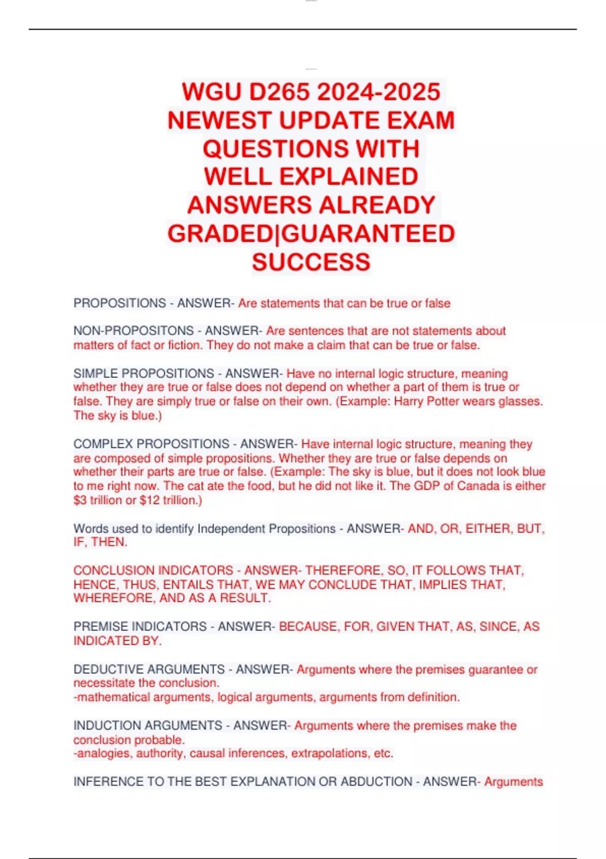 INDUCTION ARGUMENTS - ANSWER- Arguments where the premises make the