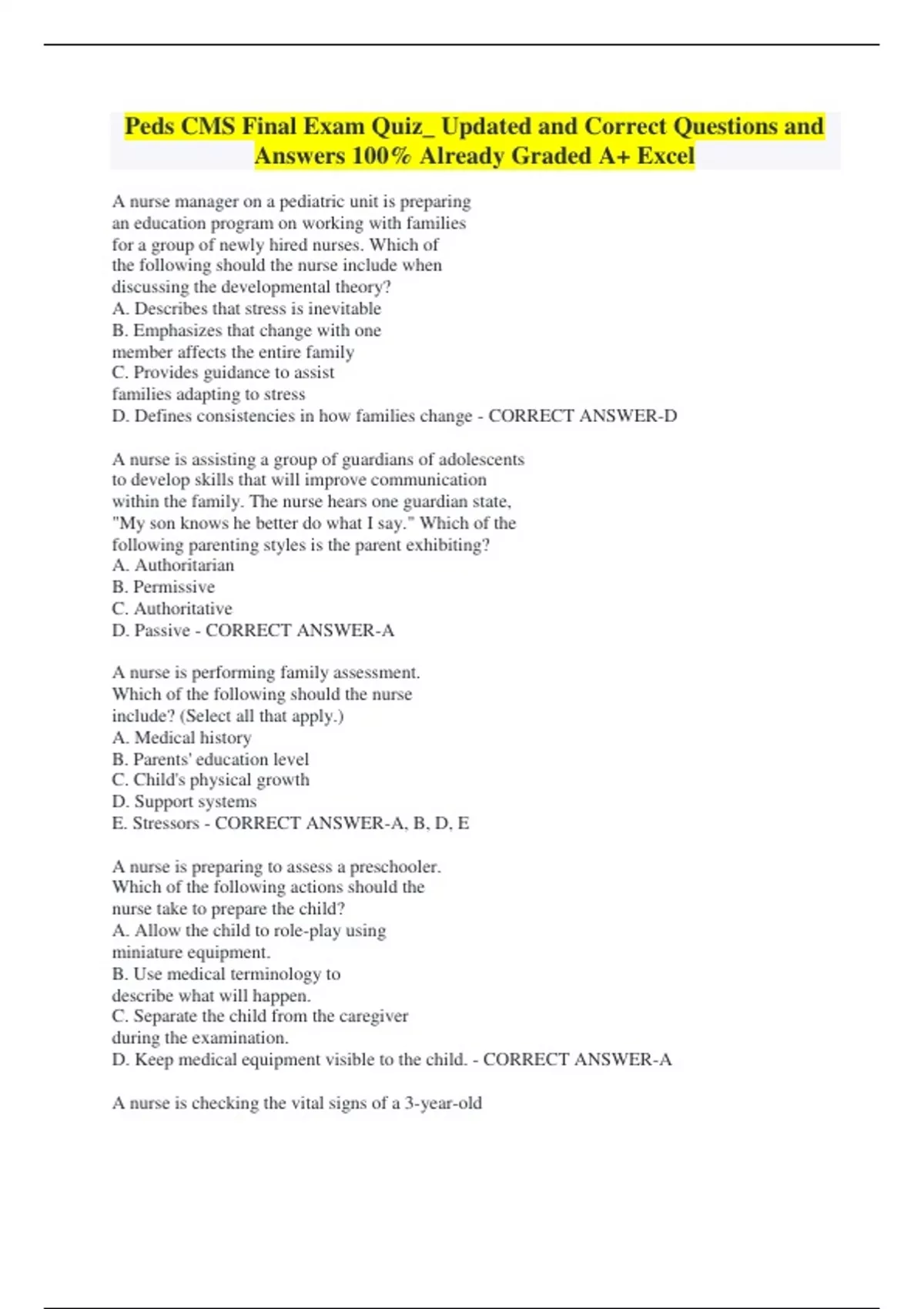 Peds CMS Final Exam Quiz_ Updated and Correct Questions and Answers 100% Already Graded A+ Excel