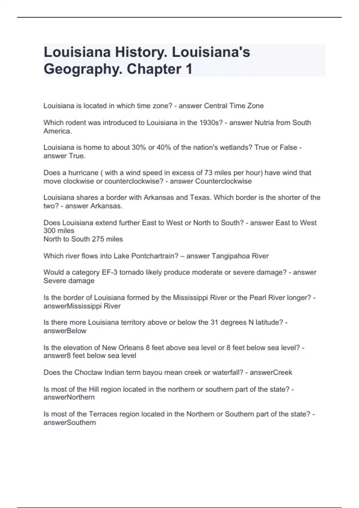 Louisiana History. Louisiana's Geography. Chapter 1 Questions and Answers 2024