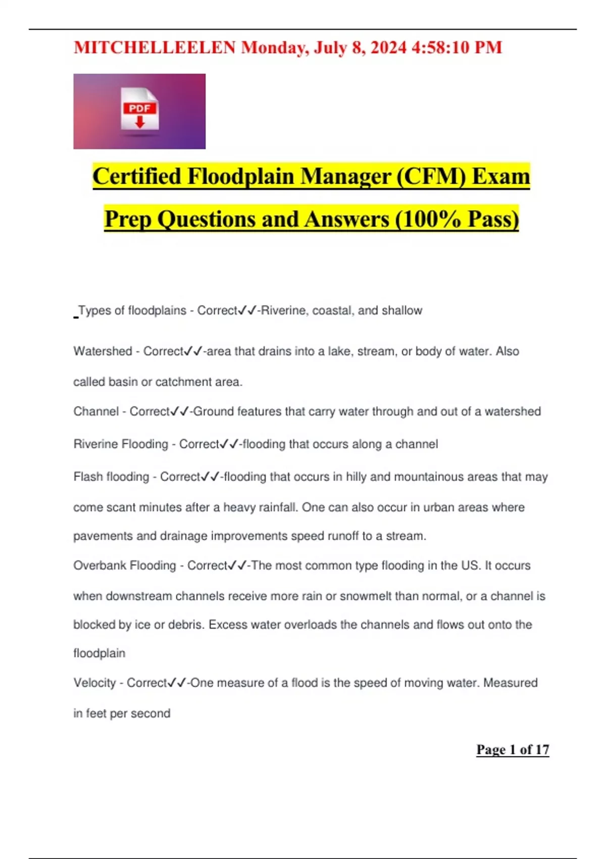 Certified Floodplain Manager (CFM) Exam Prep Questions and Answers (100% Pass)
