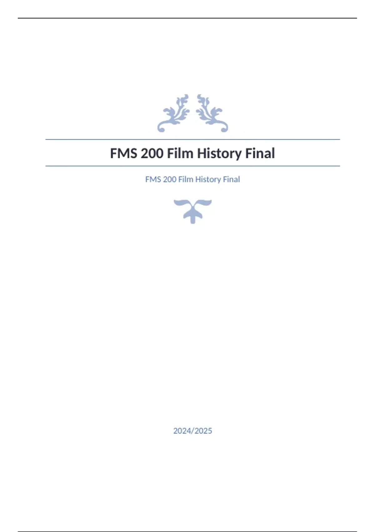 FMS 200 Film History Final Arizona State University Question and answer already passed