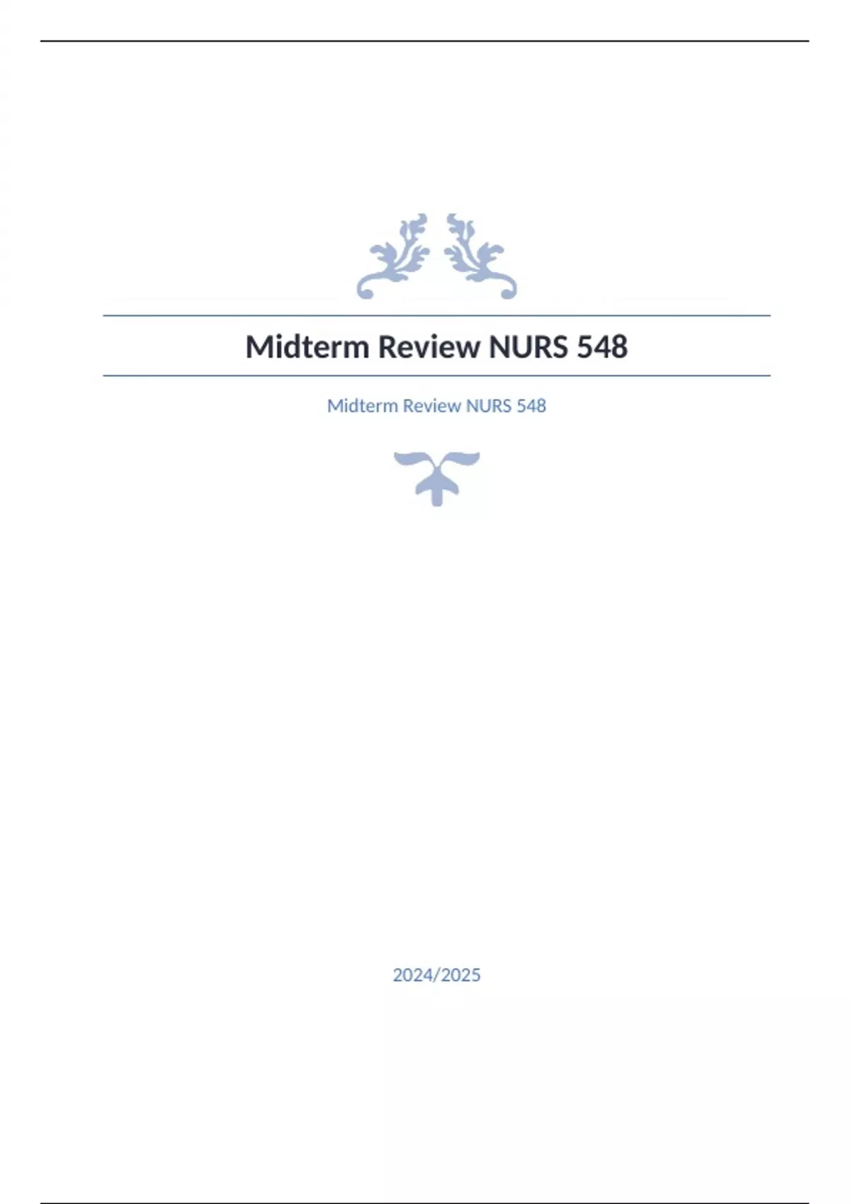Midterm Review NURS 548 Chamberlain College Nursing - Question and answers rated A+
