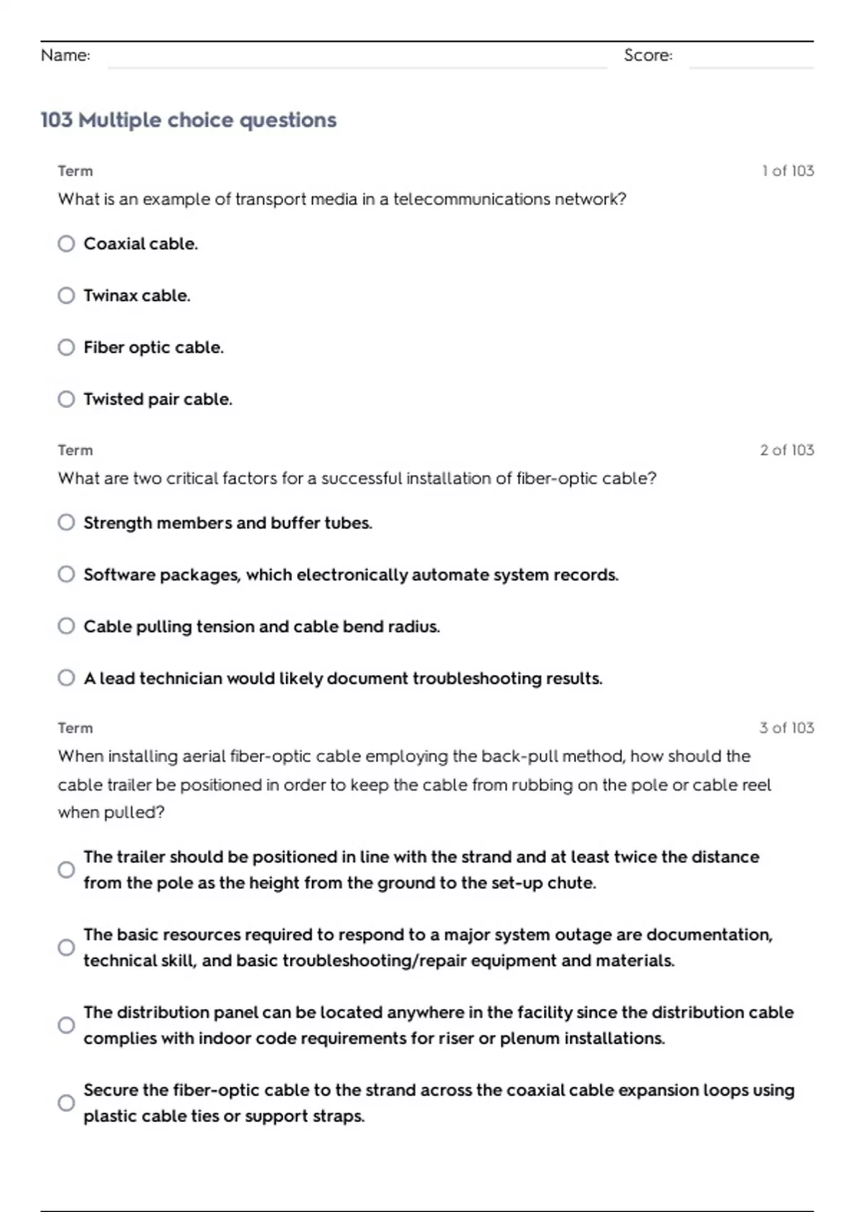 103 Multiple choice questions