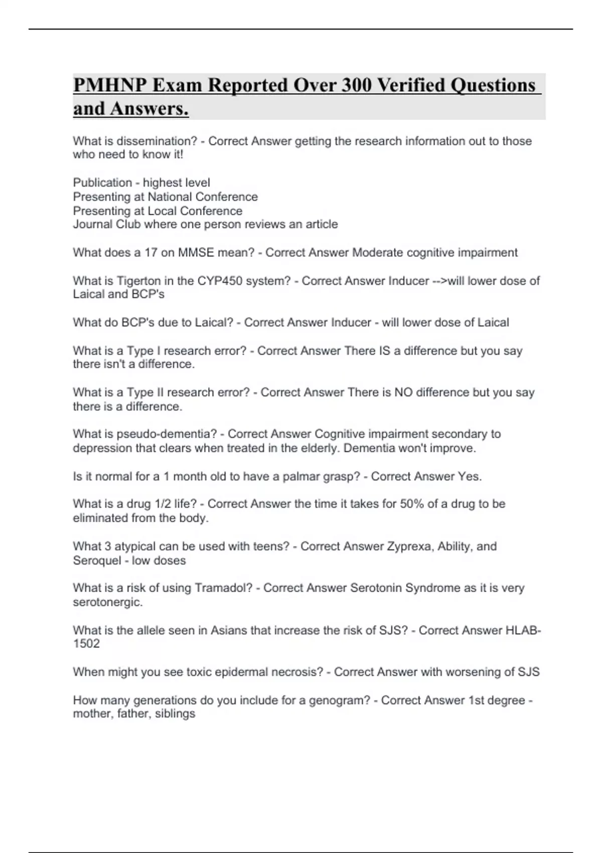 PMHNP Exam Reported Over 300 Verified Questions and Answers.