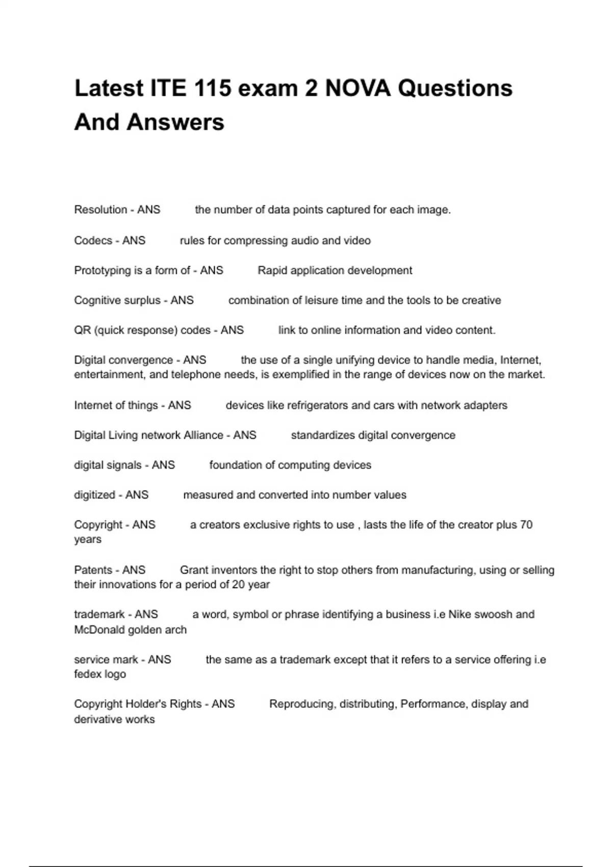 latest ite 115 exam 2 nova questions and answers