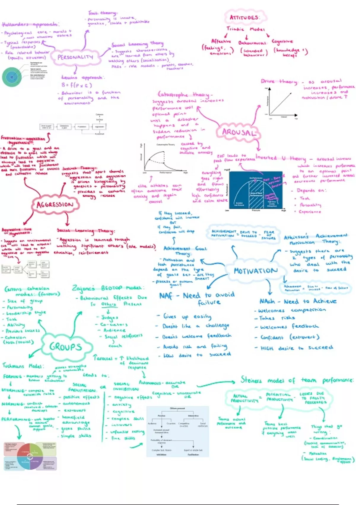 Useful for memorising the A level sport psychology models and theories, Colour coded with pictures