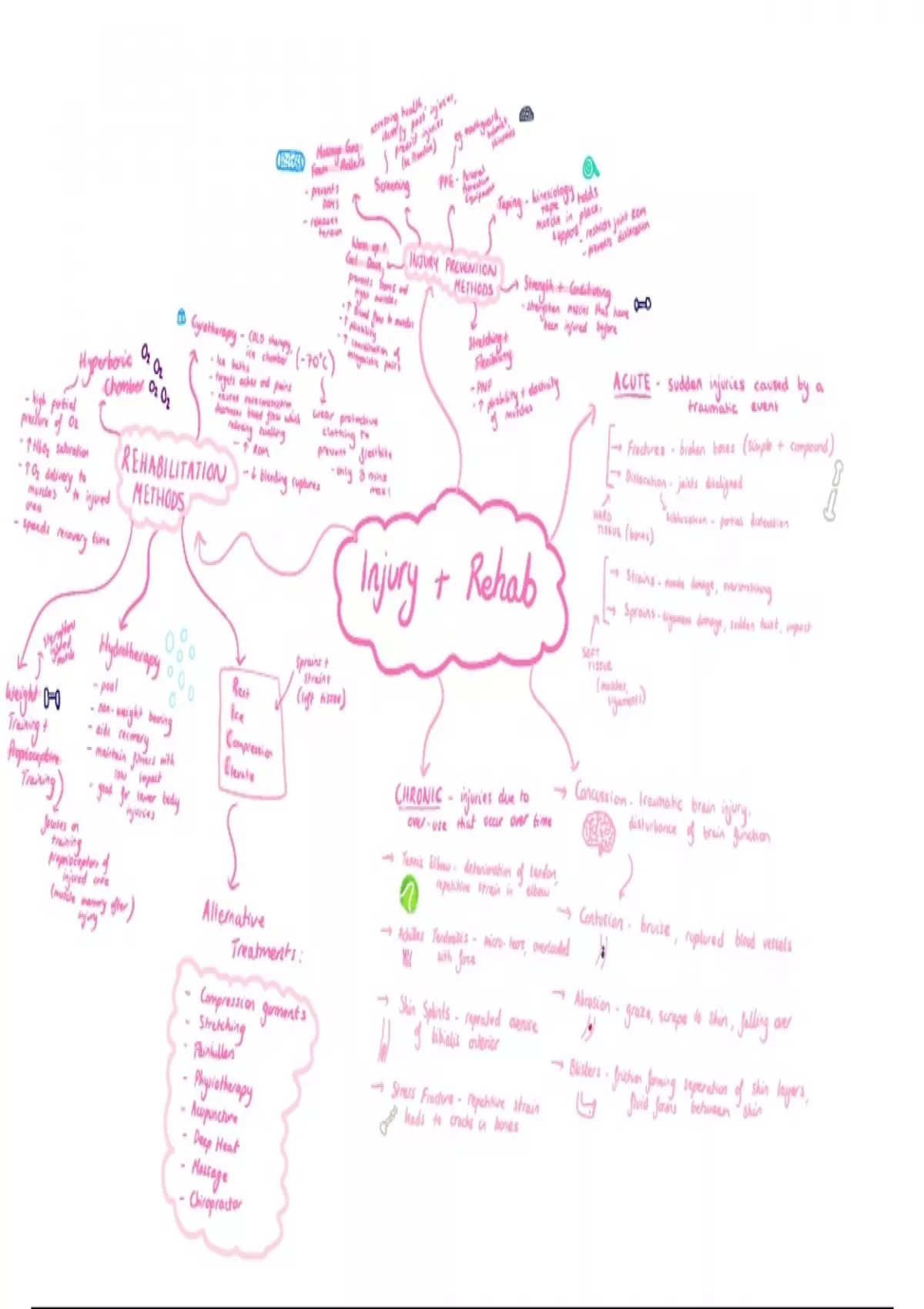 Summary Injury and Rehabilitation AQA A level PE mindmap and exam model answers