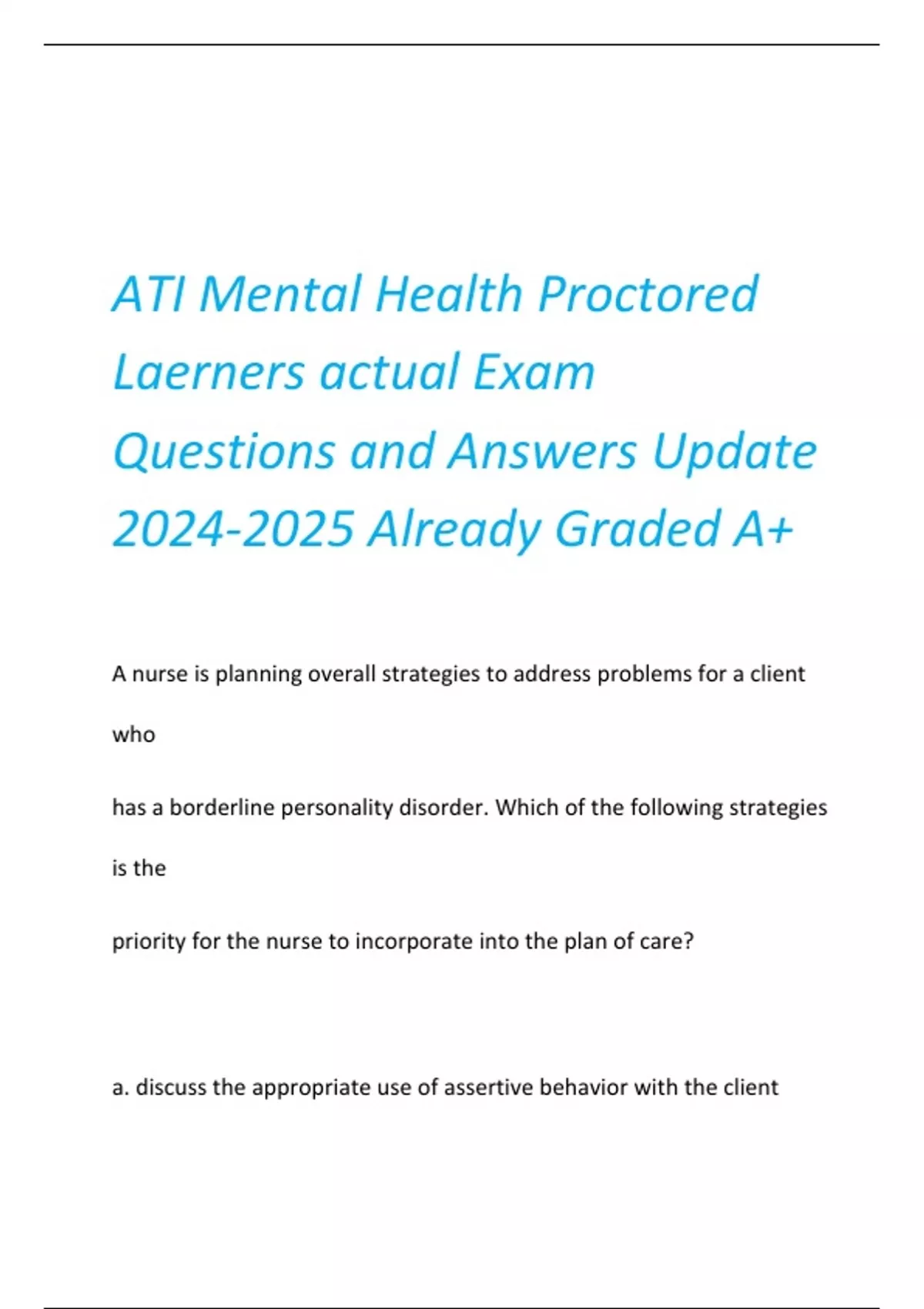 ATI Mental Health Proctored Laerners actual Exam Questions and Answers Update Already Graded A+