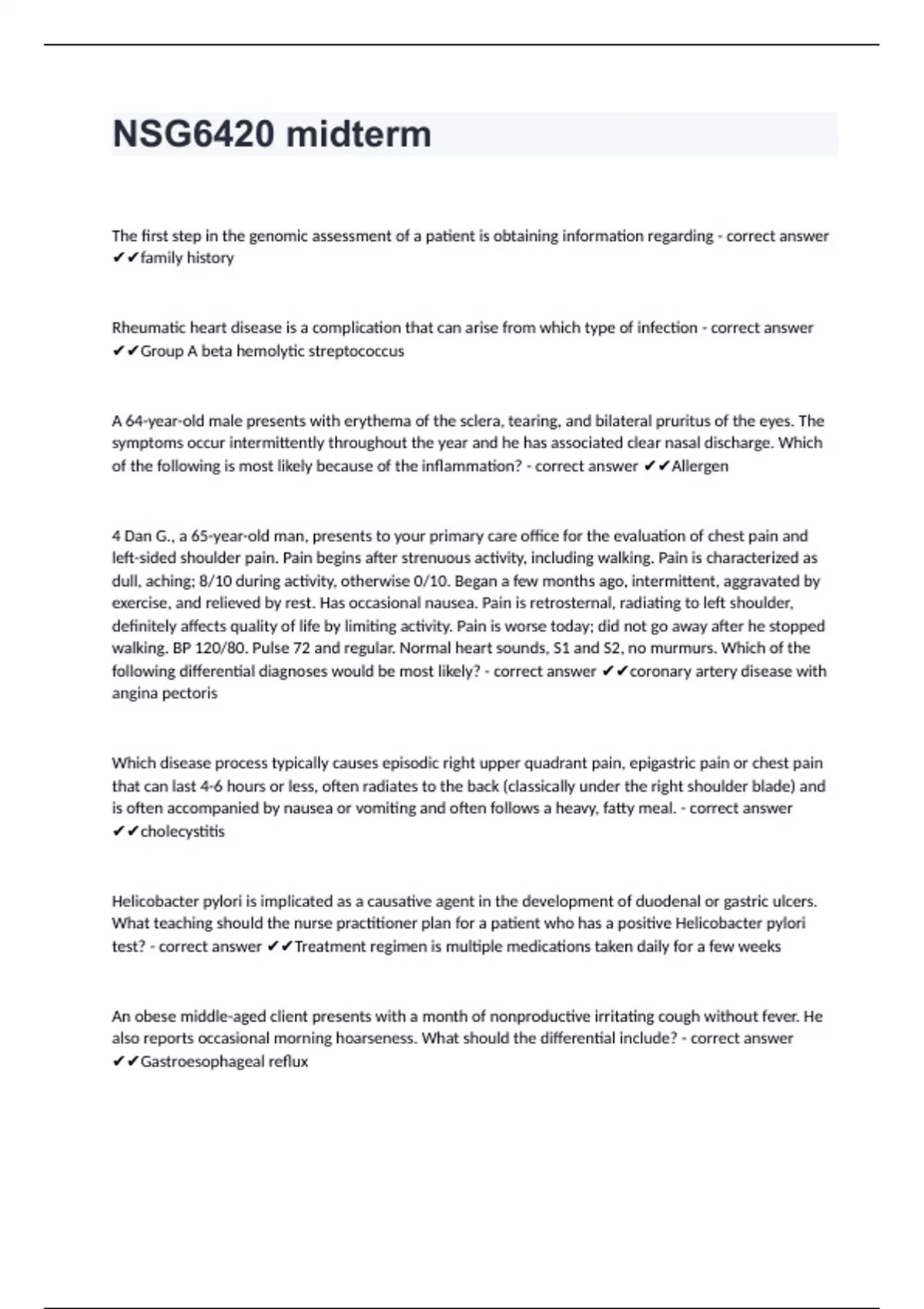 NSG6420 midterm questions well answered to pass