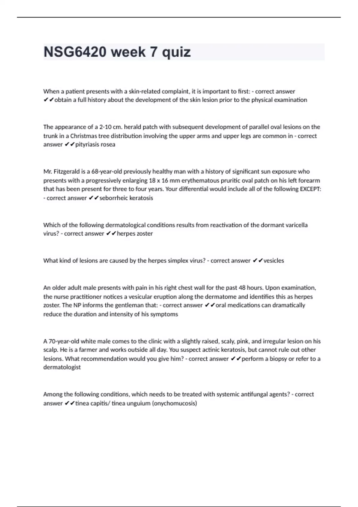 NSG6420 week 7 quiz with verified solutions