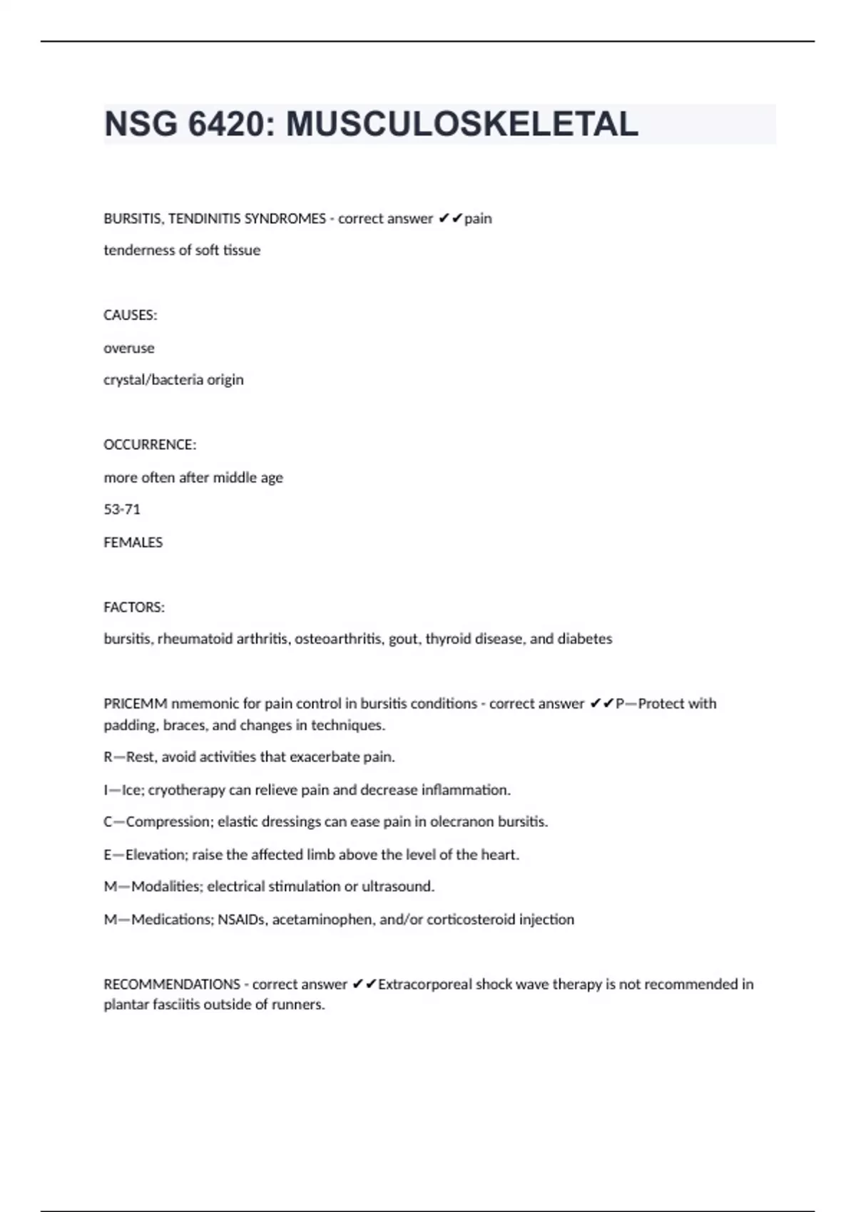 NSG 6420: MUSCULOSKELETAL correctly answered to pass
