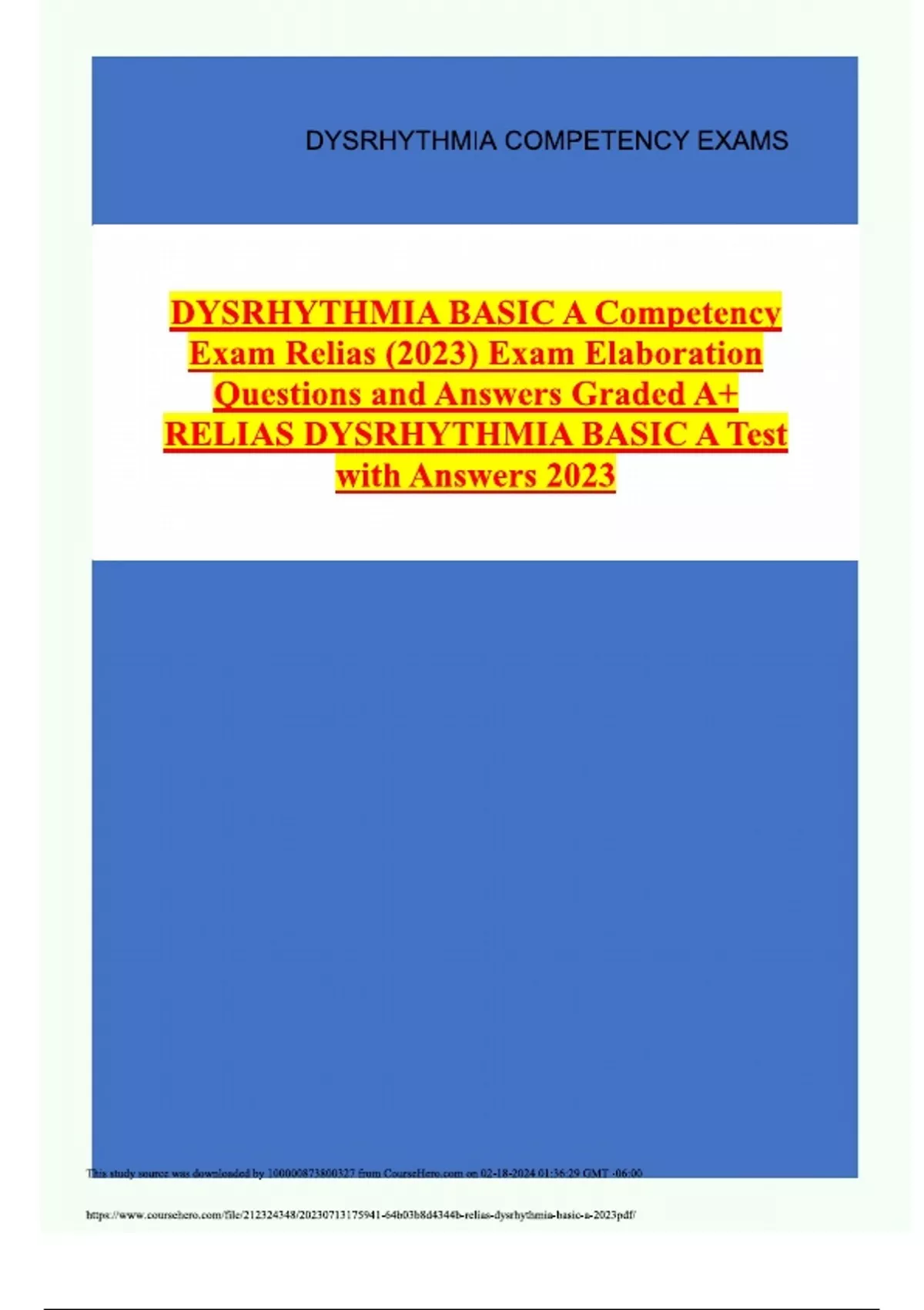DYSRHYTHMIA BASIC A Competency Exam Relias (2024) Exam Elaboration Questions and Answers
