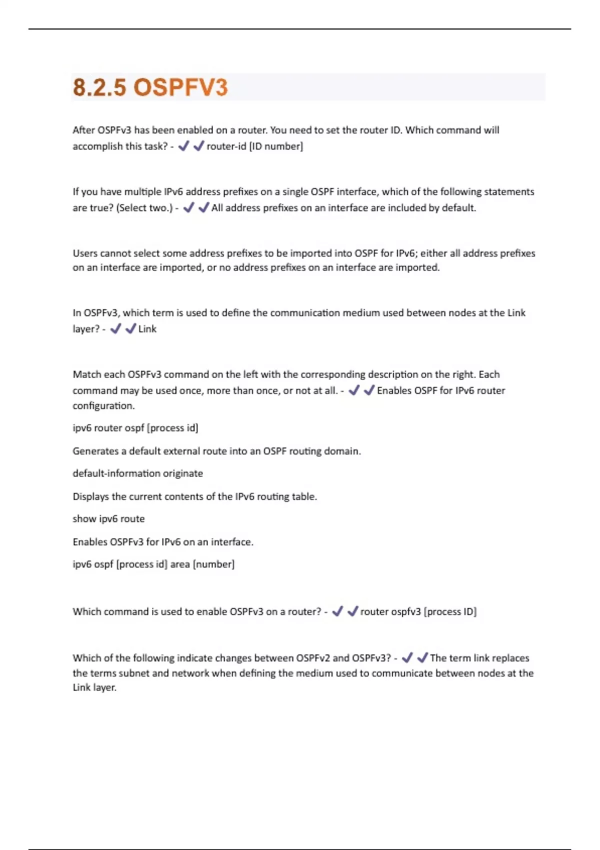 8.2.5 OSPFV3 QUESTIONS & ANSWERS VERIFIED 100% CORRECT!!