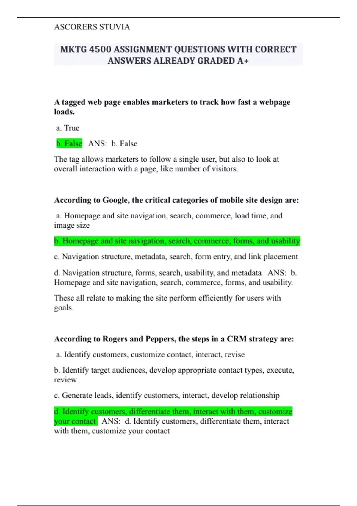 MKTG 4500 ASSIGNMENT QUESTIONS WITH CORRECT ANSWERS ALREADY GRADED A+