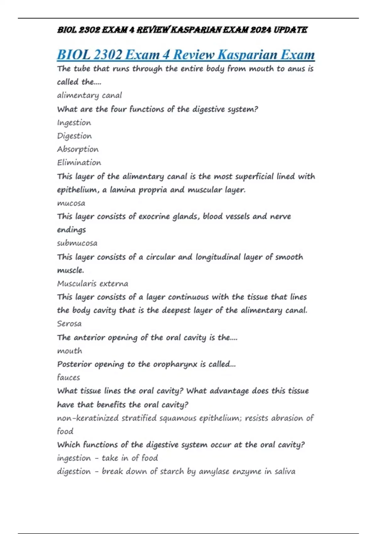 BIOL 2302 Exam 4 Review Kasparian exam Latest update
