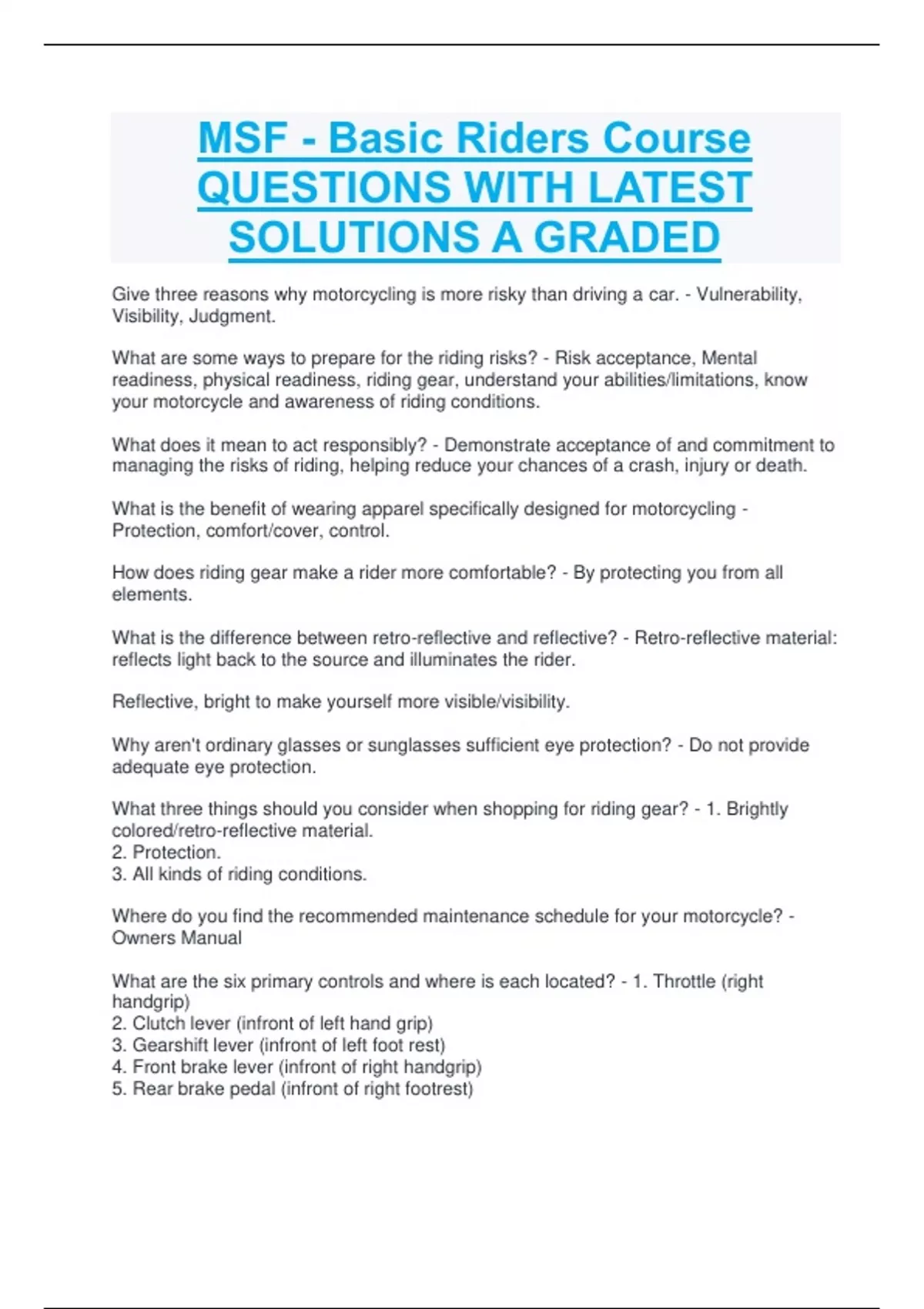MSF - Basic Riders Course QUESTIONS WITH LATEST SOLUTIONS A GRADED