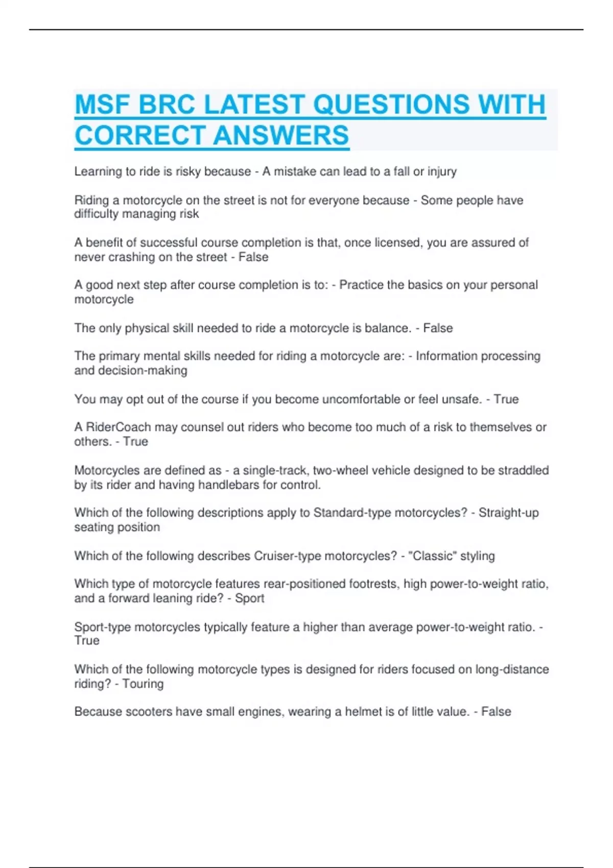 MSF - Basic Riders Course QUESTIONS WITH LATEST SOLUTIONS A GRADED