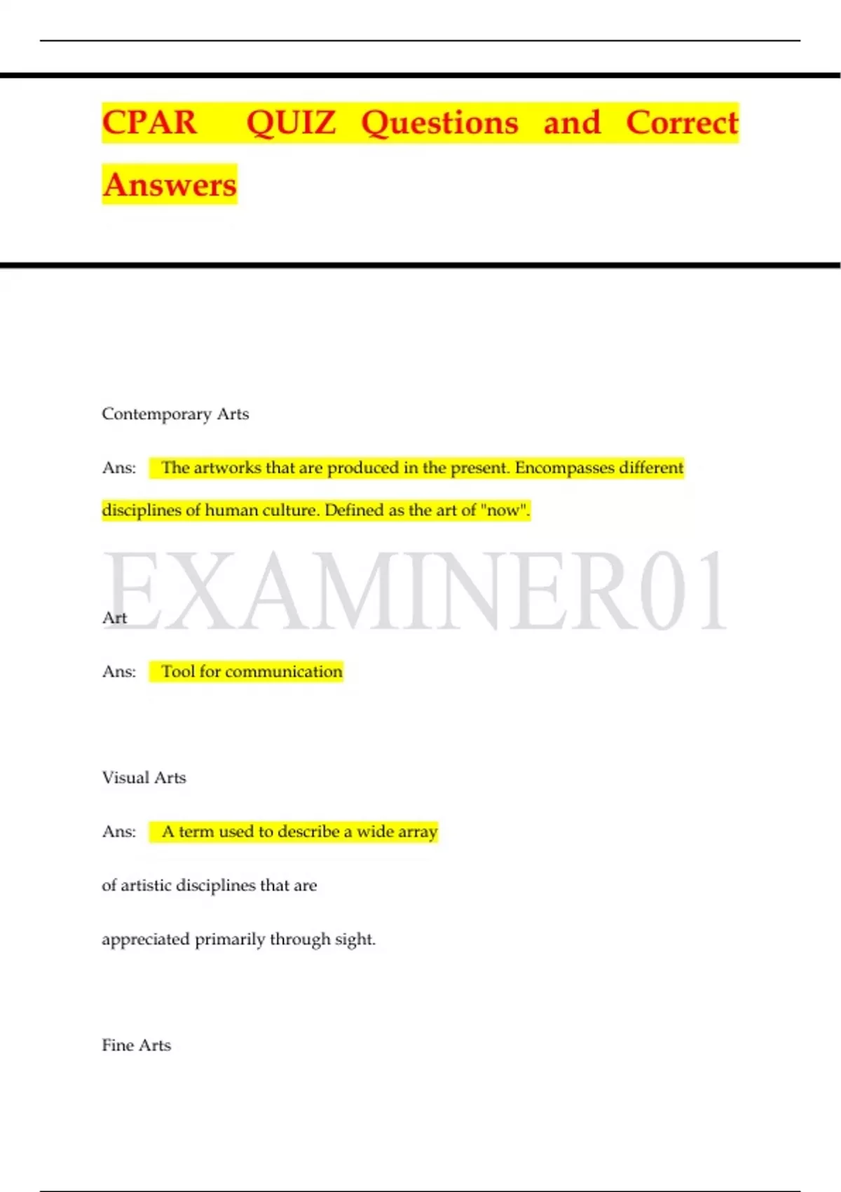 CPAR QUIZ Questions and Correct Answers