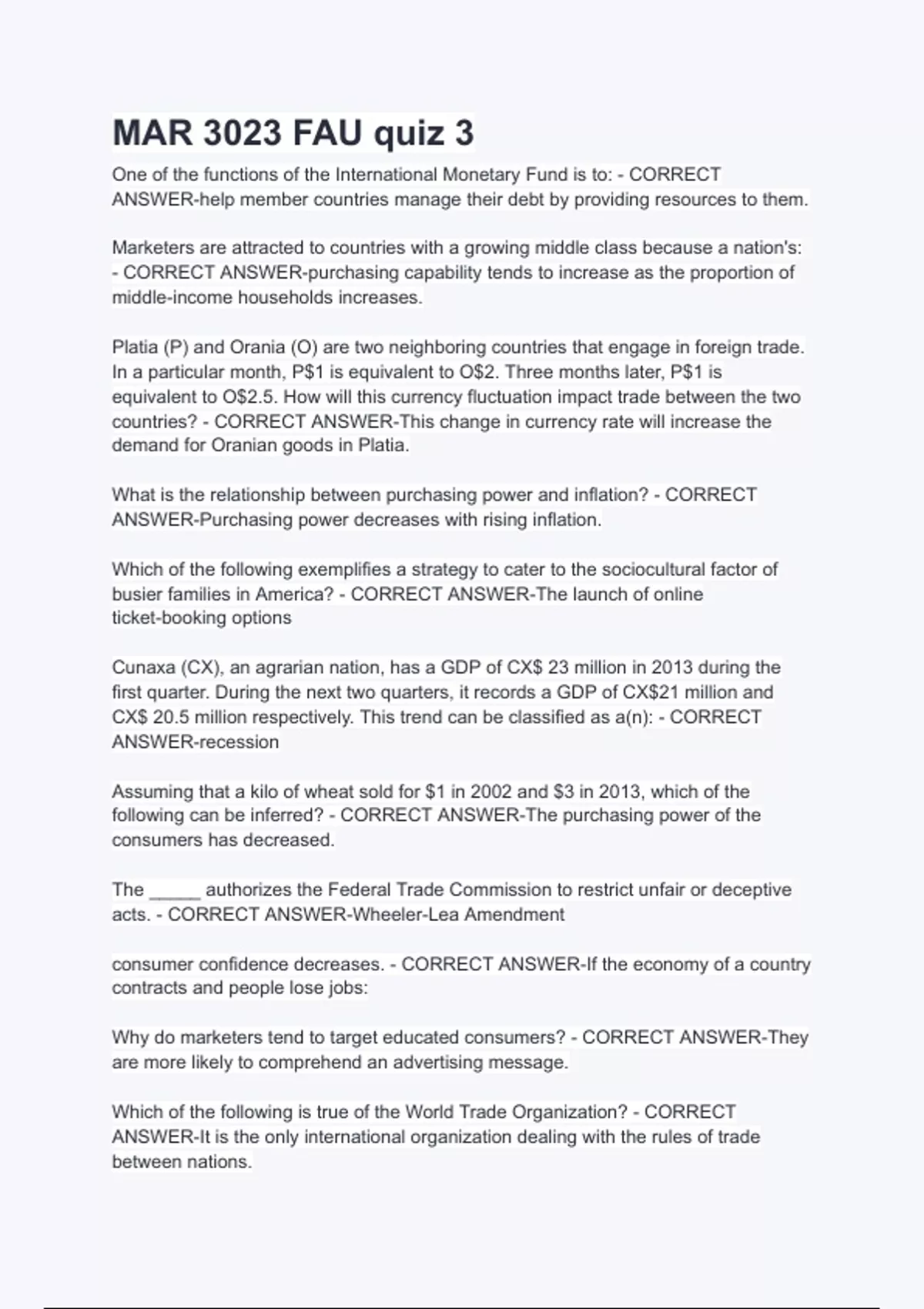 countries? - CORRECT ANSWER-This change in currency rate will increase the