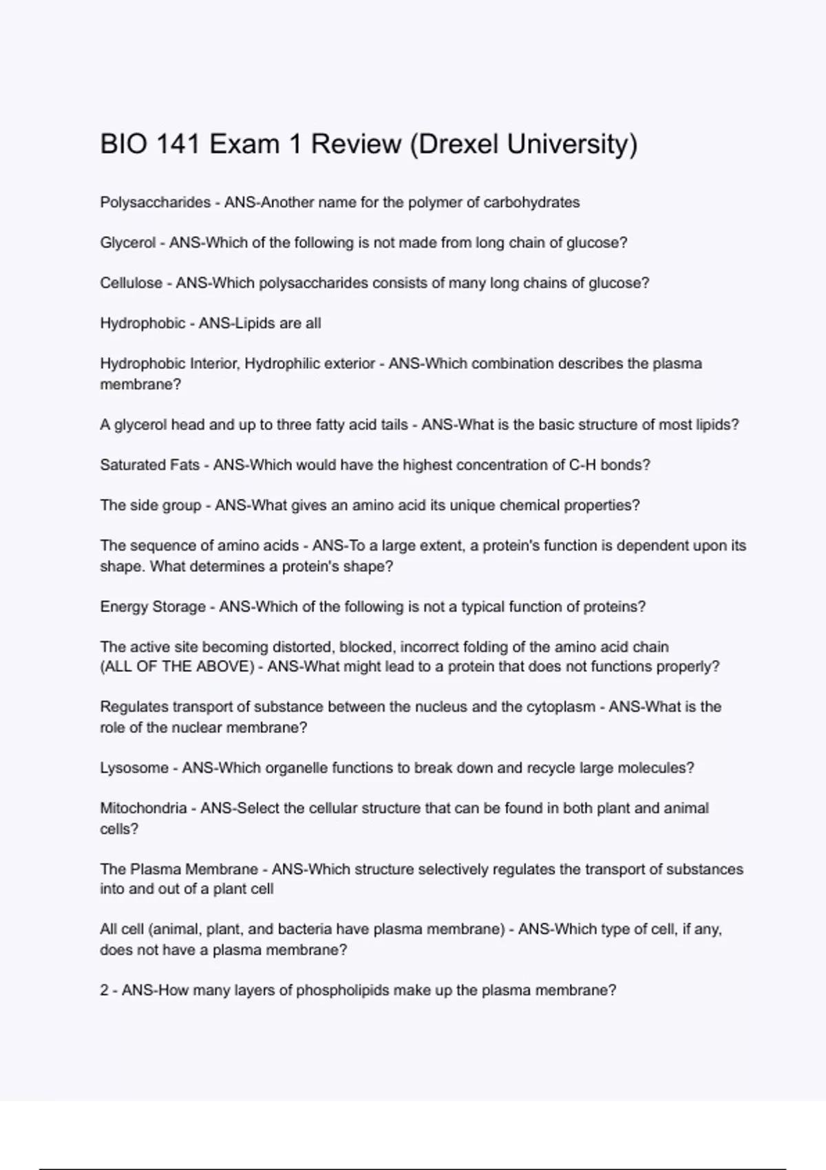 BIO 141 Exam 1 Review (Drexel University)